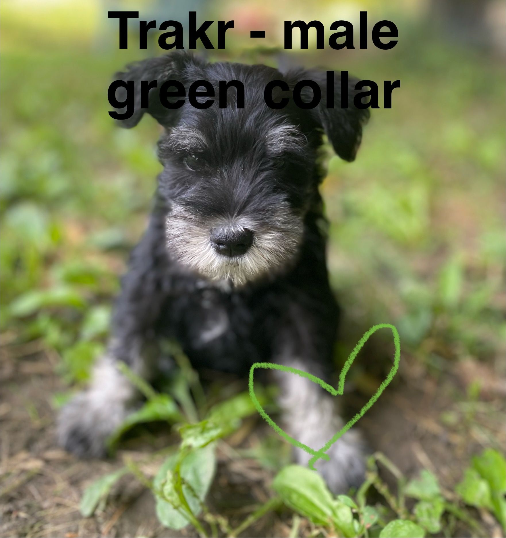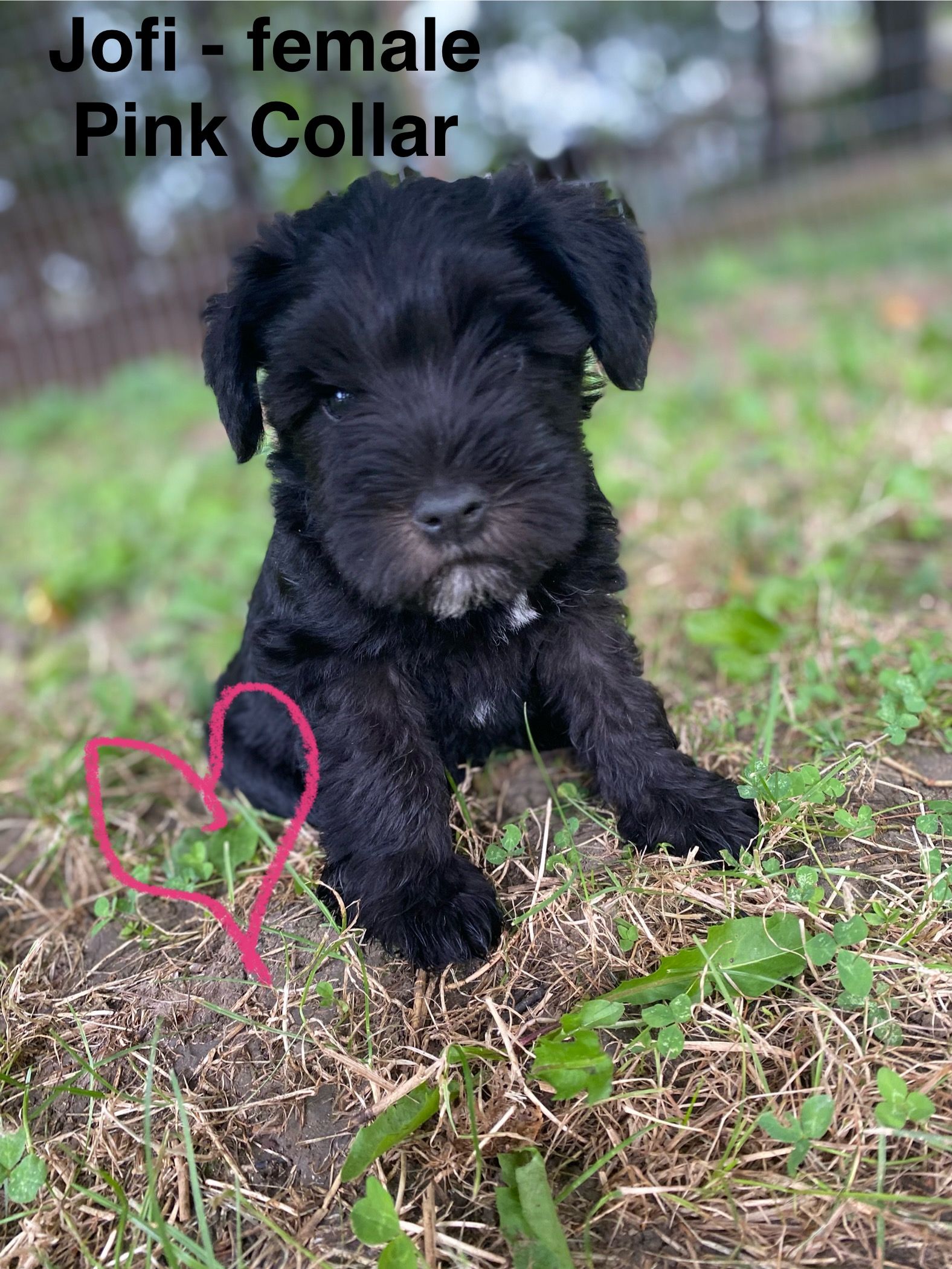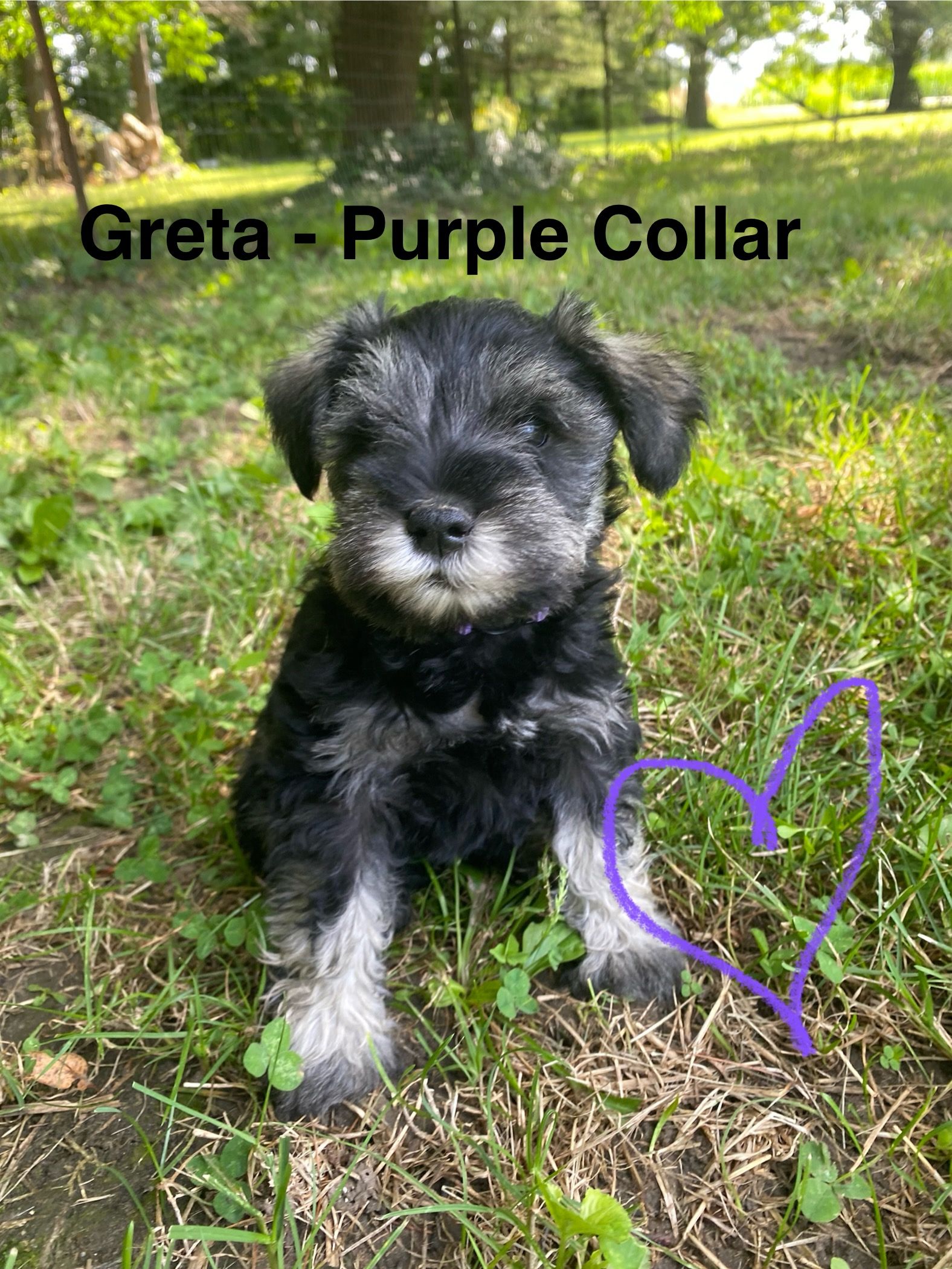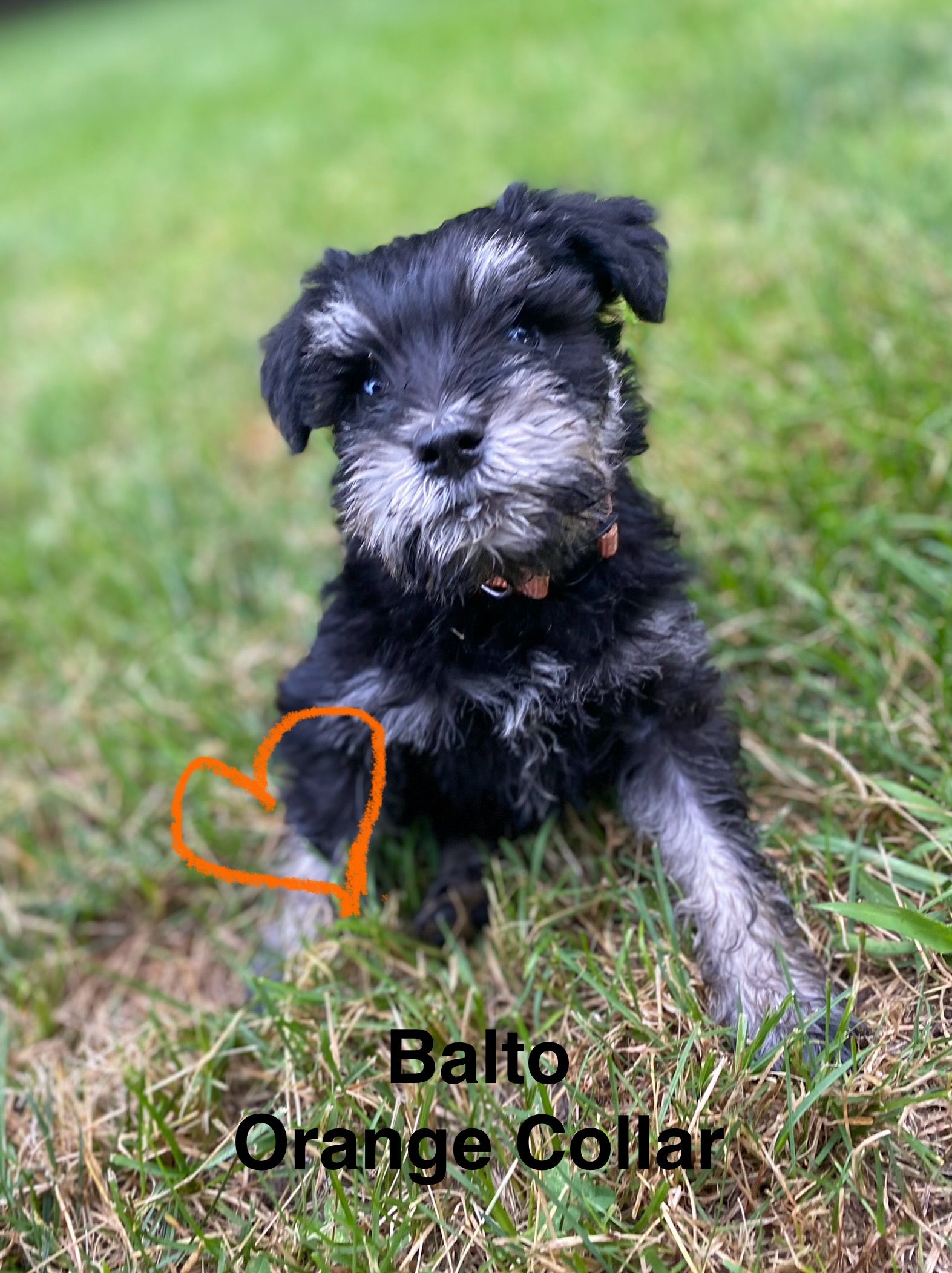 Our puppies include salt and pepper, black and silver, and black. Colors will vary depending on the parent dogs.