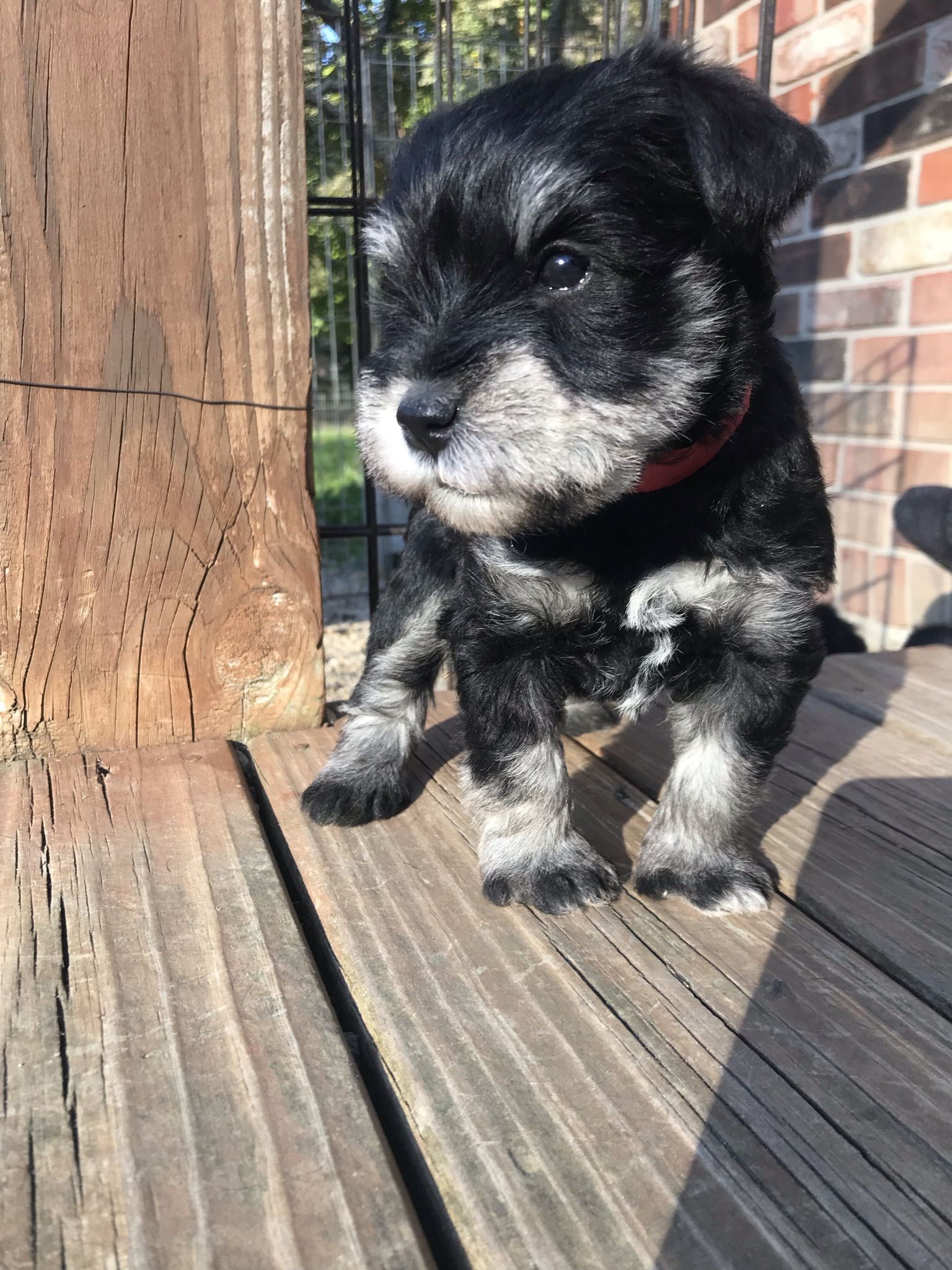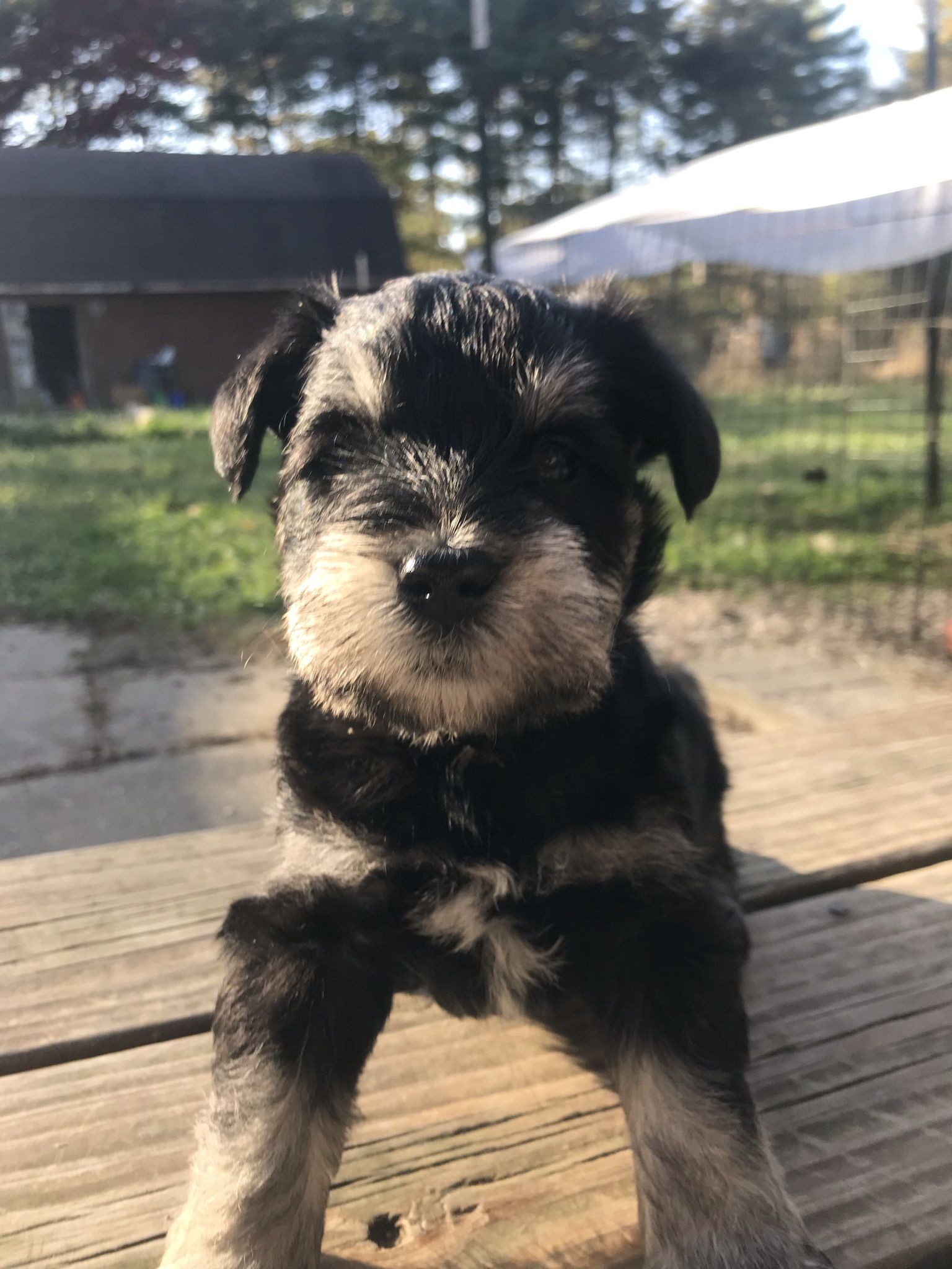 I can't say enough good things about Melissa. She was great to work with and gave lots of advice for training my puppy. She followed up on how things were going. If you have any questions, she always gets back with you quickly. Puppy is settling in nicely. Like all puppies, he has such energy. She cares so much for here puppies and makes sure they are going to a good home and it works for them. I would recommend her to anyone looking for a mini schnauzer. Nothing but a positive experience here.