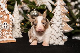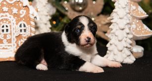 Our puppies include black, red merle, blue merle, and red. Colors will vary depending on the parent dogs.