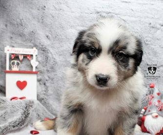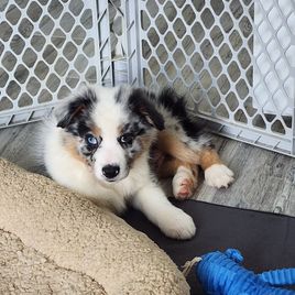 Our puppies include black, red merle, blue merle, and red. Colors will vary depending on the parent dogs.