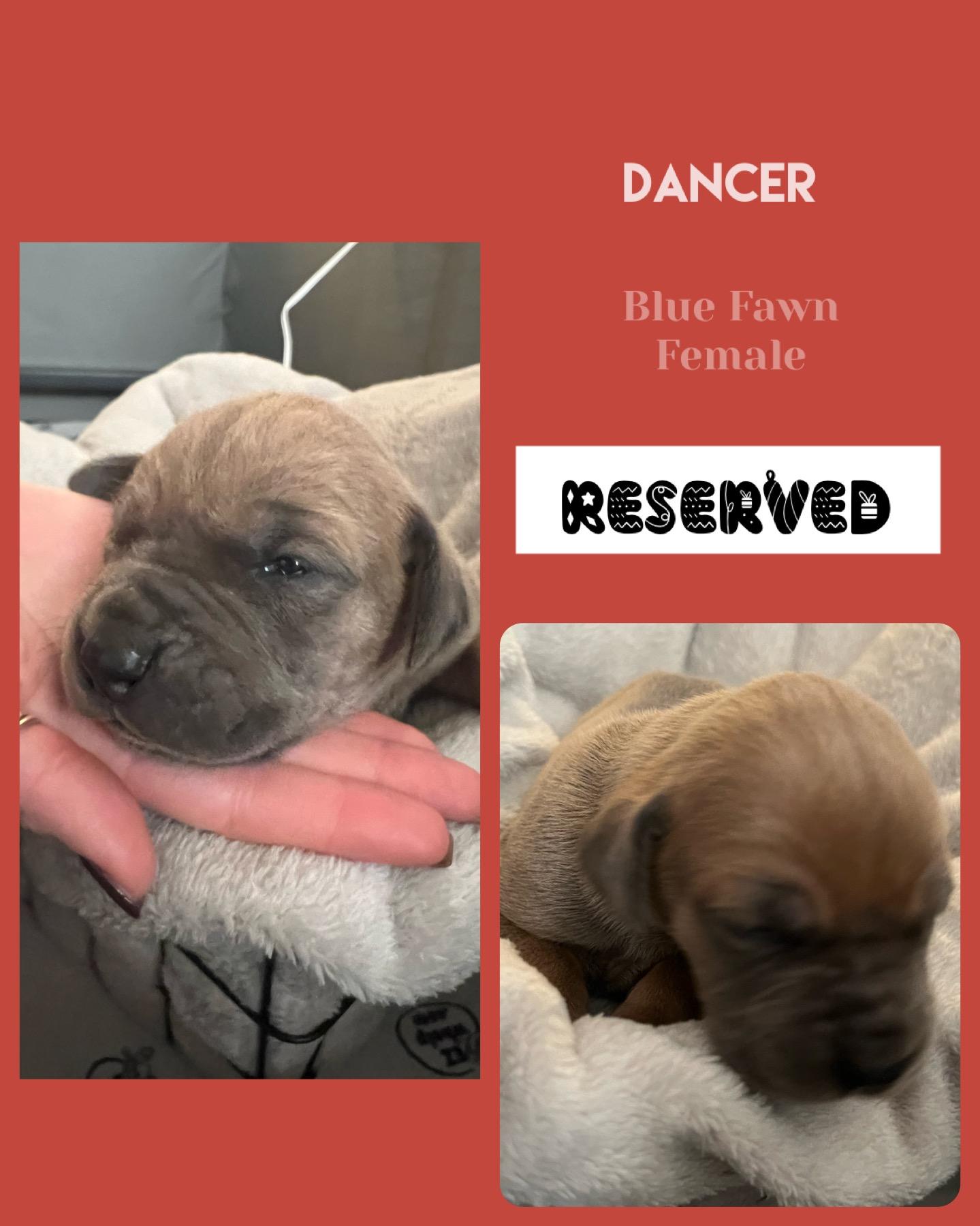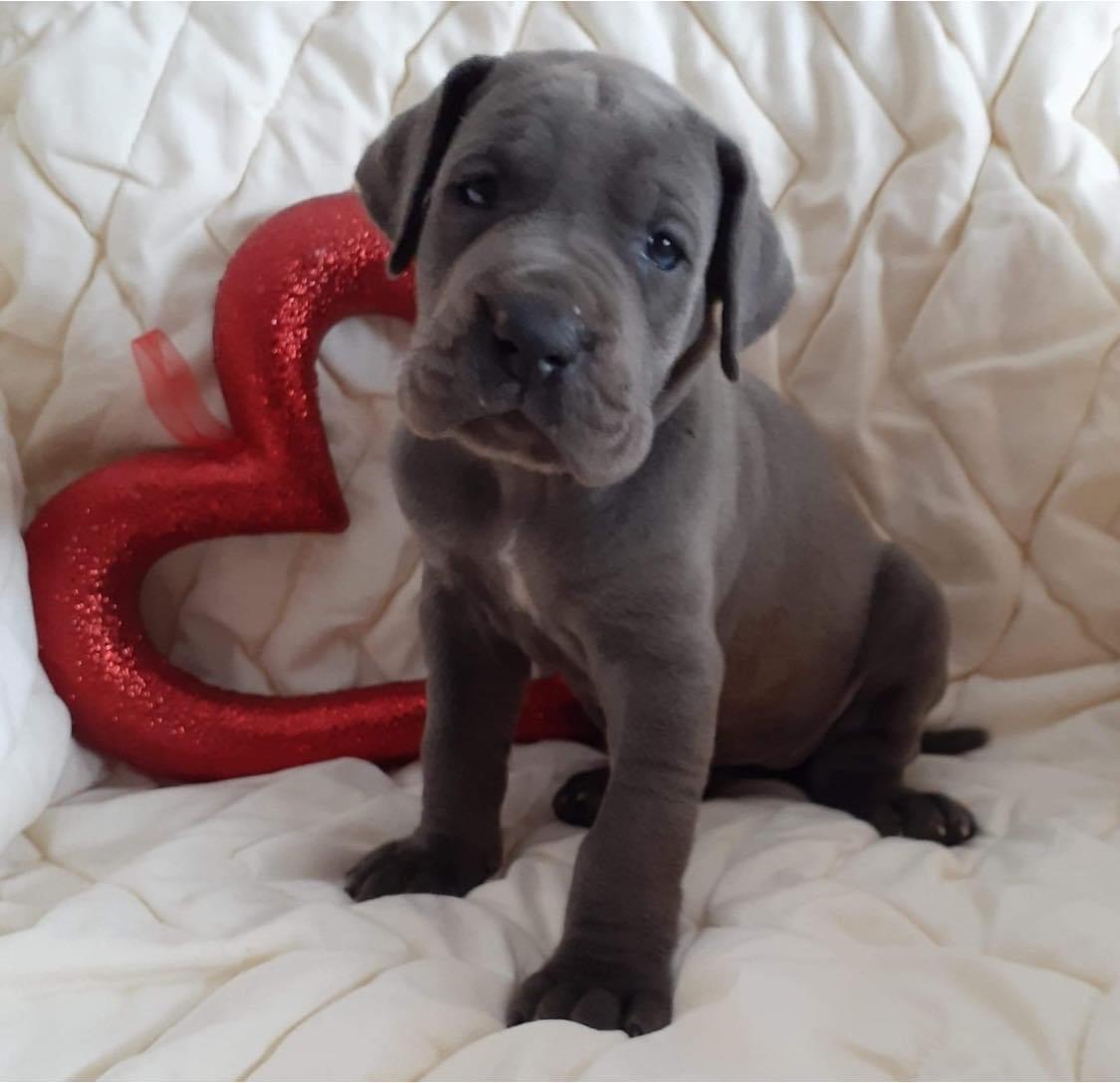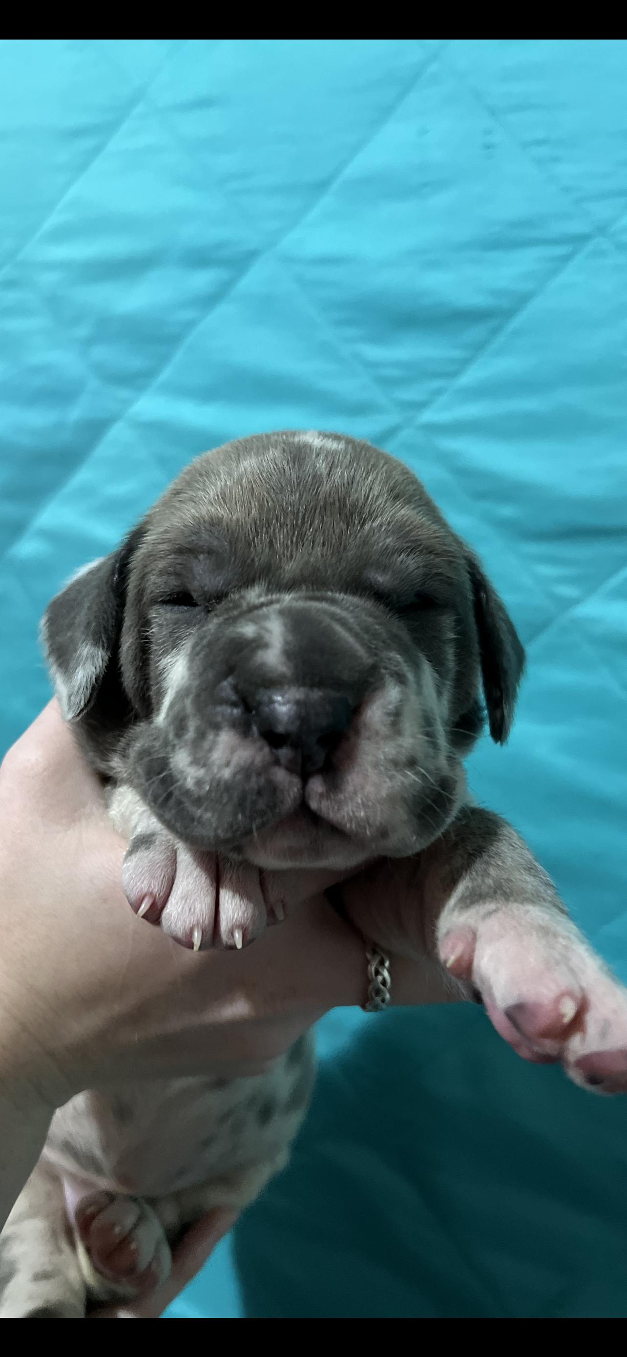 Our puppies include fawn, blue, and harlequin. Colors will vary depending on the parent dogs.