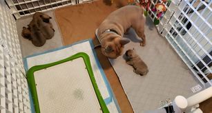 We love our French Bulldogs so much and they are treated as such! Our dogs Claudette and Louie are family members first. We strive to only produce quality puppies and not large quantities.