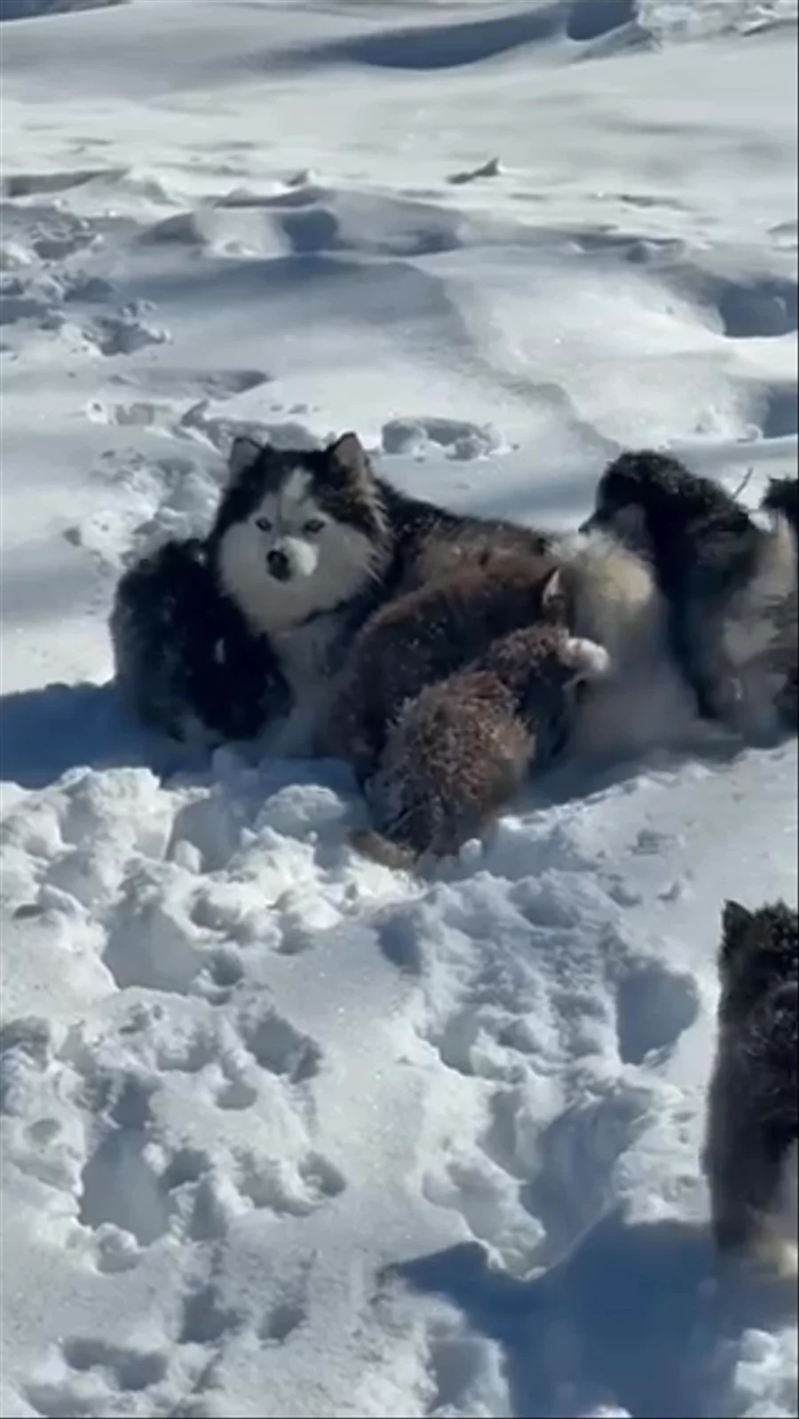 Introducing Coach, our chunky sweet boy with two bright blue eyes! This handsome fella is the epitome of sweetness! He loves to follow the family and sit on a foot while watching the world go by. Coach and his siblings are loving the snow! True snow dogs. This handsome boy will develop silver husky markings as he ages, will have a beautiful black wooly coat and is very flashy with his white markings! Raised with children, cats and adult dogs, our puppies are confident, outgoing and make wonderful companions. This cross produces some of our favorite puppies both in looks and temperament.