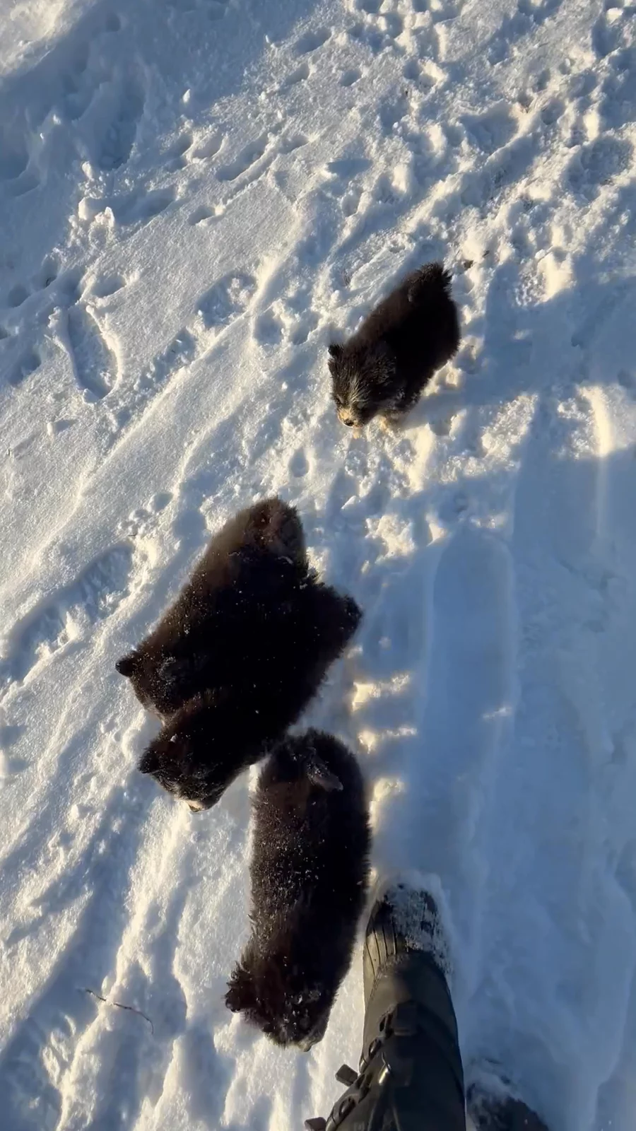 The pups first fall walk with Hamish the gentle giant and puppy guardian! This litter is drop dead gorgeous and very consistent! All puppies are dark wolf sable with a stout build and beautiful happy, playful, outgoing and intelligent dispositions! We have boys available! All with two brown eyes and wooly dark wolf sable coats. Our puppies are raised with children, cats and our adult dogs to help develop adaptable, resilient and bomb proof temperaments!