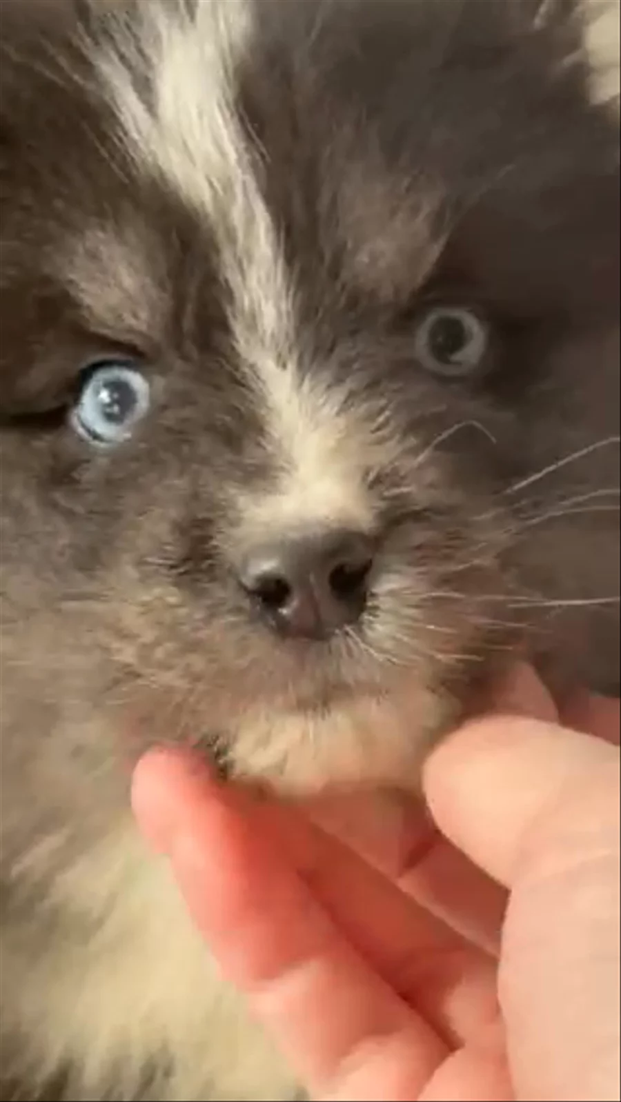 Showcasing Journey, our gorgeous dark chocolate blue eyed boy from our River and Rune litter! This guy is happy, playful, very people oriented and a pure joy to be around! He’s very engaged and attentive, already coming to a whistle! Smart guy! Journey will be a bigger sturdy boy weighing 30-40 pounds mature. He adores the kids and is wonderful with the other dogs. He’s been learning proper puppy etiquette from our adult dogs which is an invaluable tool! Journey will make a wonderful and beautiful active family companion. Pomskies are a very pack oriented breed. They do wonderful with another dog in the household but it’s not a necessity if given an outlet for their intelligence and energy.