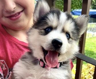 Andrea was very helpful right from the beginning! The extra mile they go with socialization experiences really showed when we brought Nula home. Right away she was respectful of other dogs and very good with children. Nula has been a joy to have in our family. We’ve had huskies before yet never a pomsky, Nula is very social, playful and athletic, such a sweet girl with just a touch of spice! Perfect!