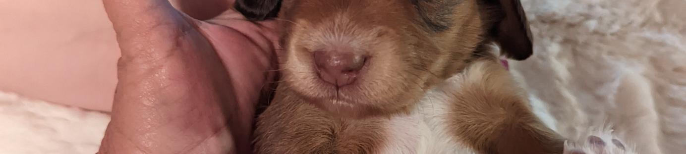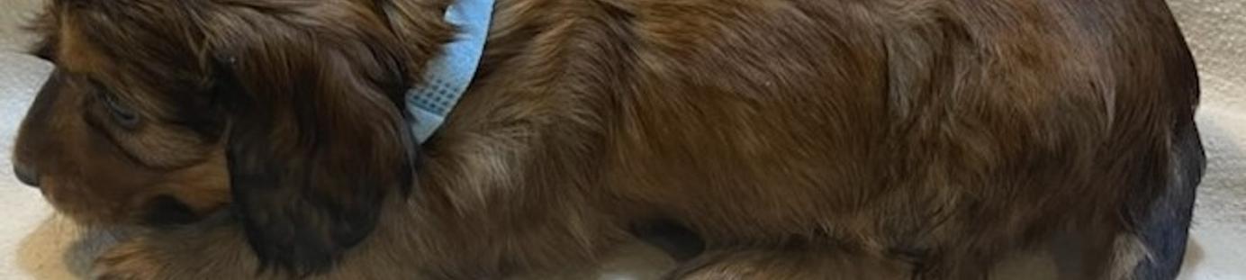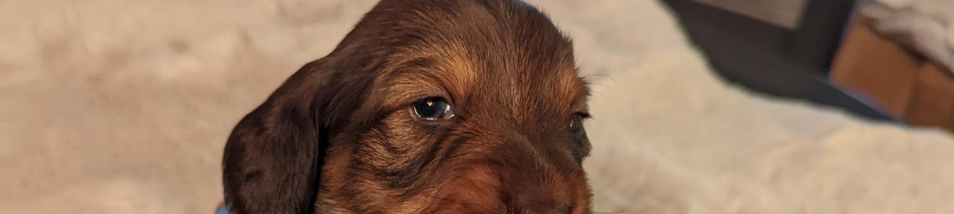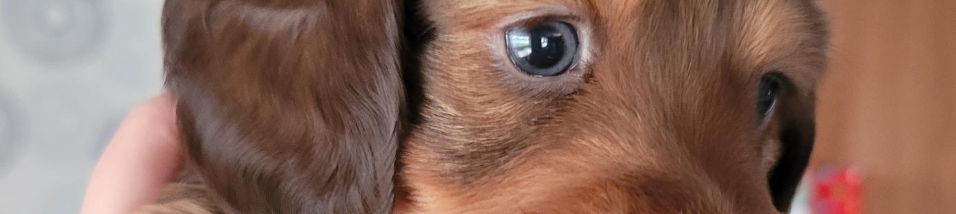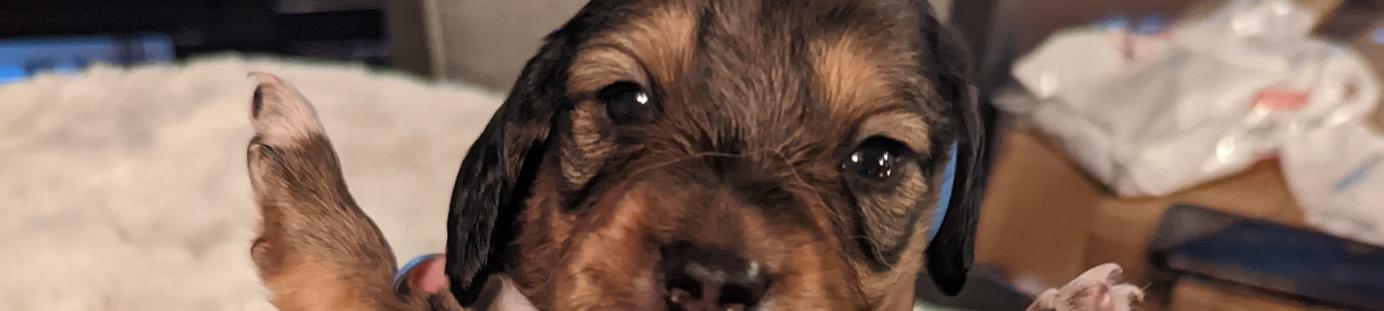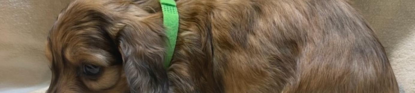 FINLEE is a male Dachshund. Carefully selected as a great representative of his breed, Debbie decided to make him part of their program. Debbie has passed Good Dog’s screening process, which involved a review of their breeding practices, environment, and the mental and physical health of their dogs.