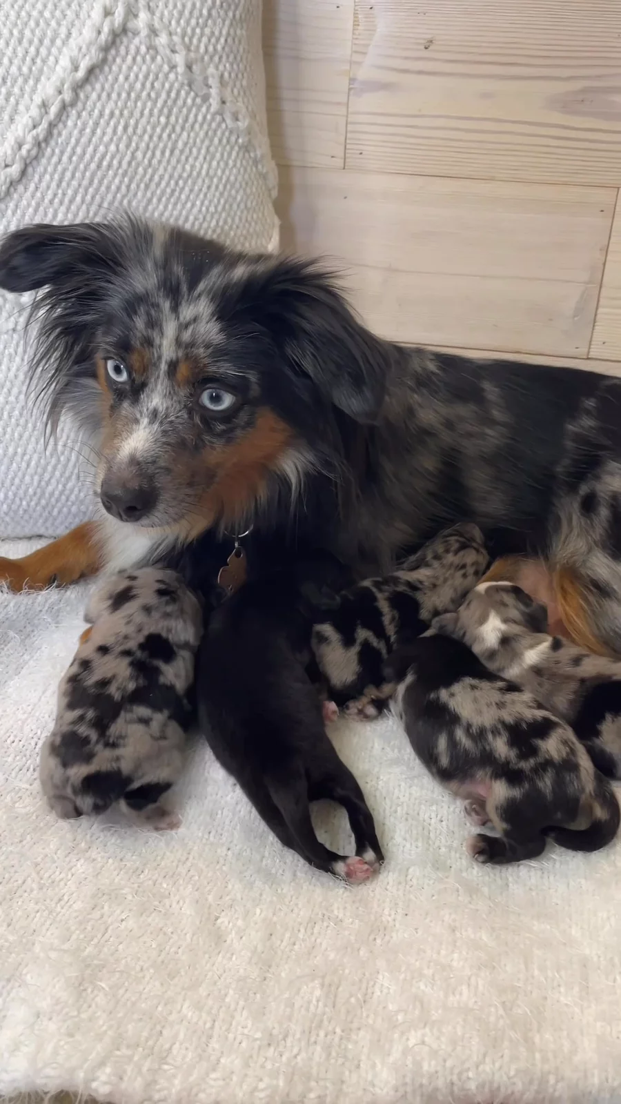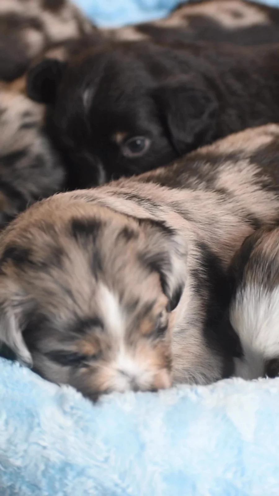 ✨Introducing our newest little darlings✨ Analie & Bennett’s “Vintage” litter arrived this week. 💛 We are so in love already! 🐾 3 handsome blue Merle boys- Darcy, Percy & Oliver 🐾 1 beautiful blue Merle girl- Hazel 🐾 1 classic black tri girl - Opal Old-soul names for these brand new hearts. We can’t wait to share their journey with you as they grow! 💫