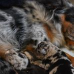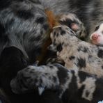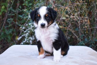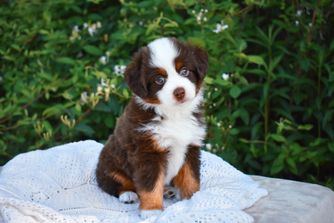 Our German Shorthaired Pointer puppies include liver roan and liver and white. Miniature American Shepherd puppies include red tri-color, black tri, red merle, and blue merle. Toy Australian Shepherd puppies include black tri, blue merle, red merle, and red tri. Colors will vary depending on the parent dogs.