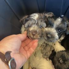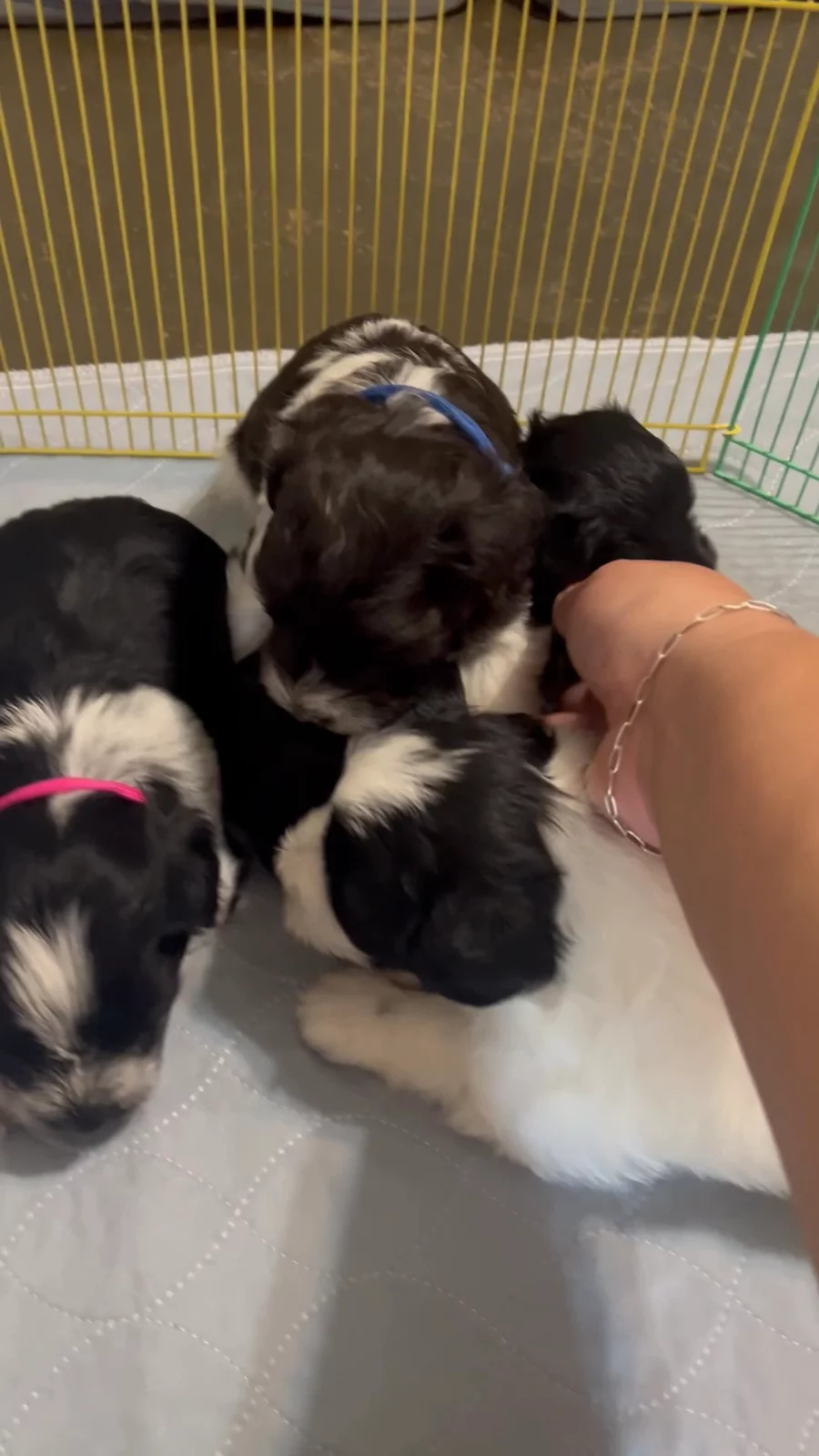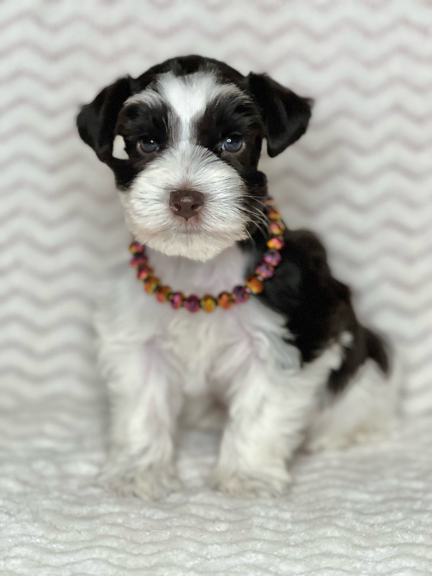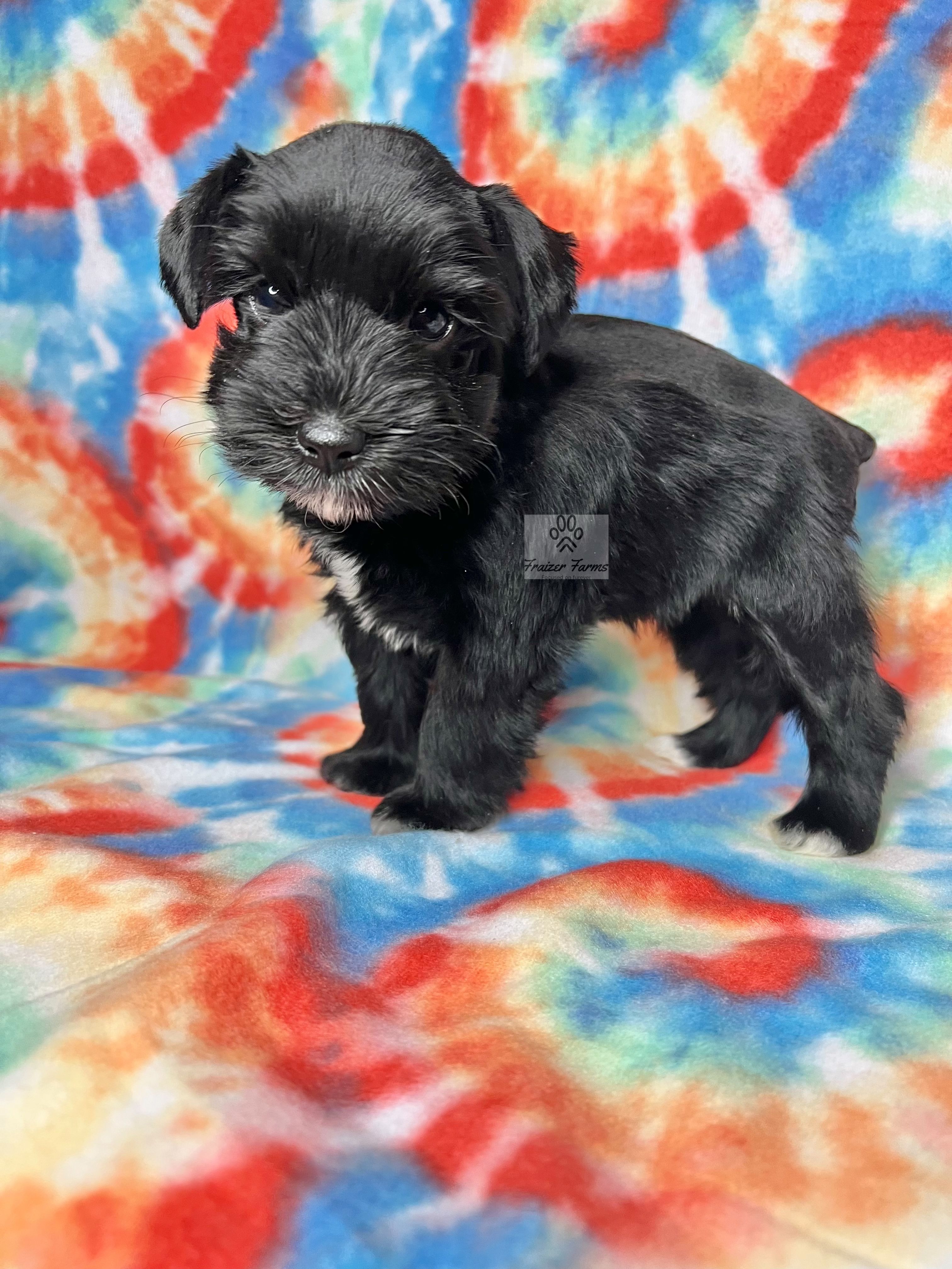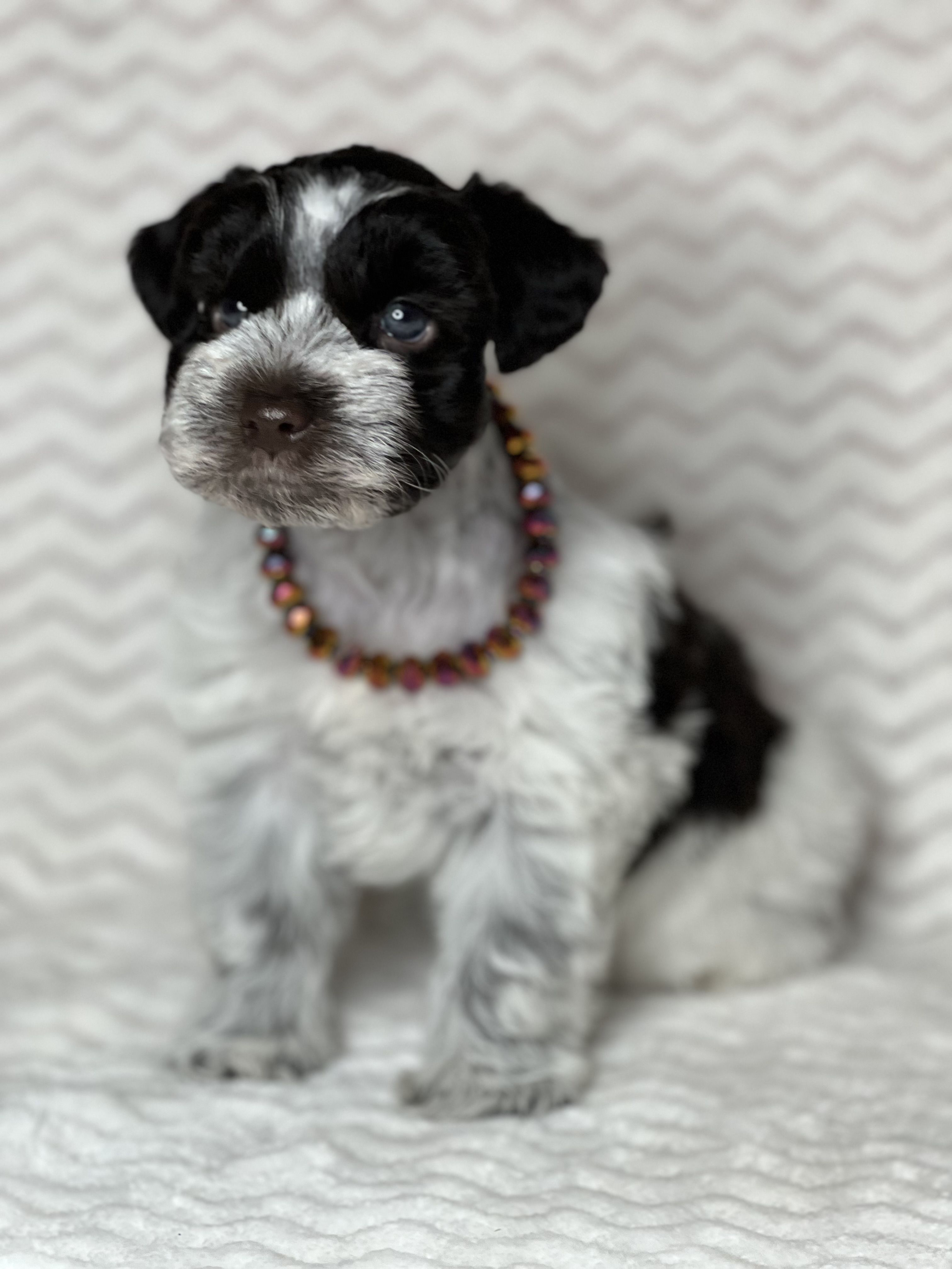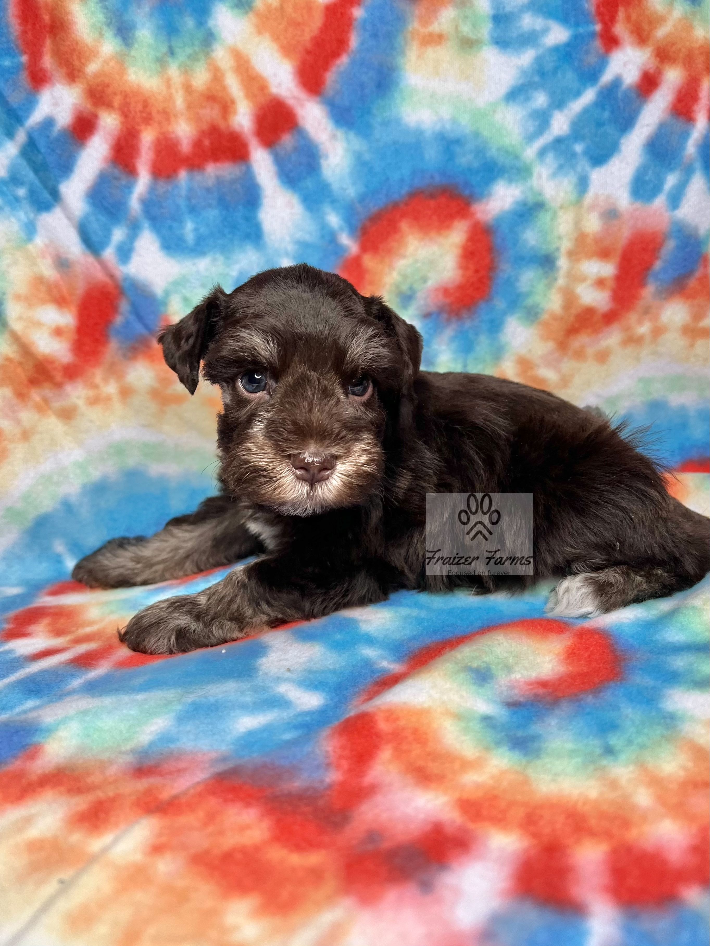 Our puppies include parti, liver, black and silver, black, and salt and pepper. Colors will vary depending on the parent dogs.