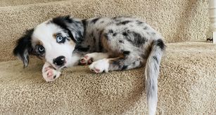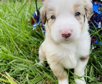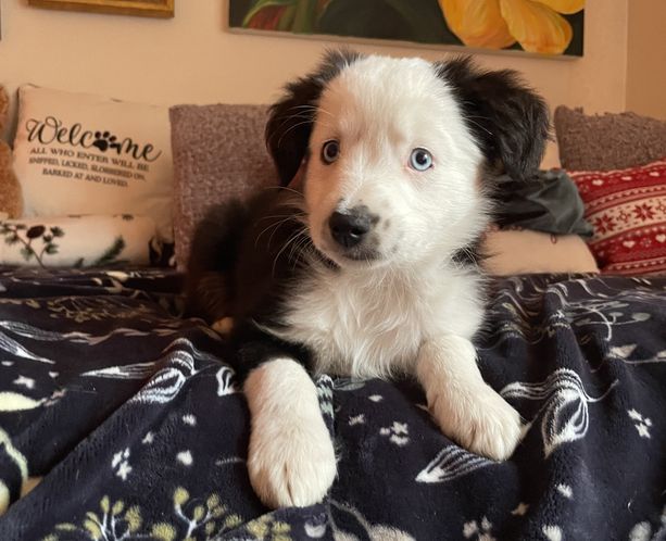 Our puppies include blue merle, black tri, red tri, and red merle. Colors will vary depending on the parent dogs.