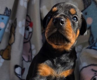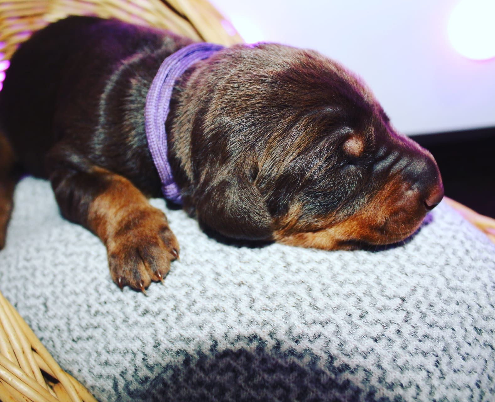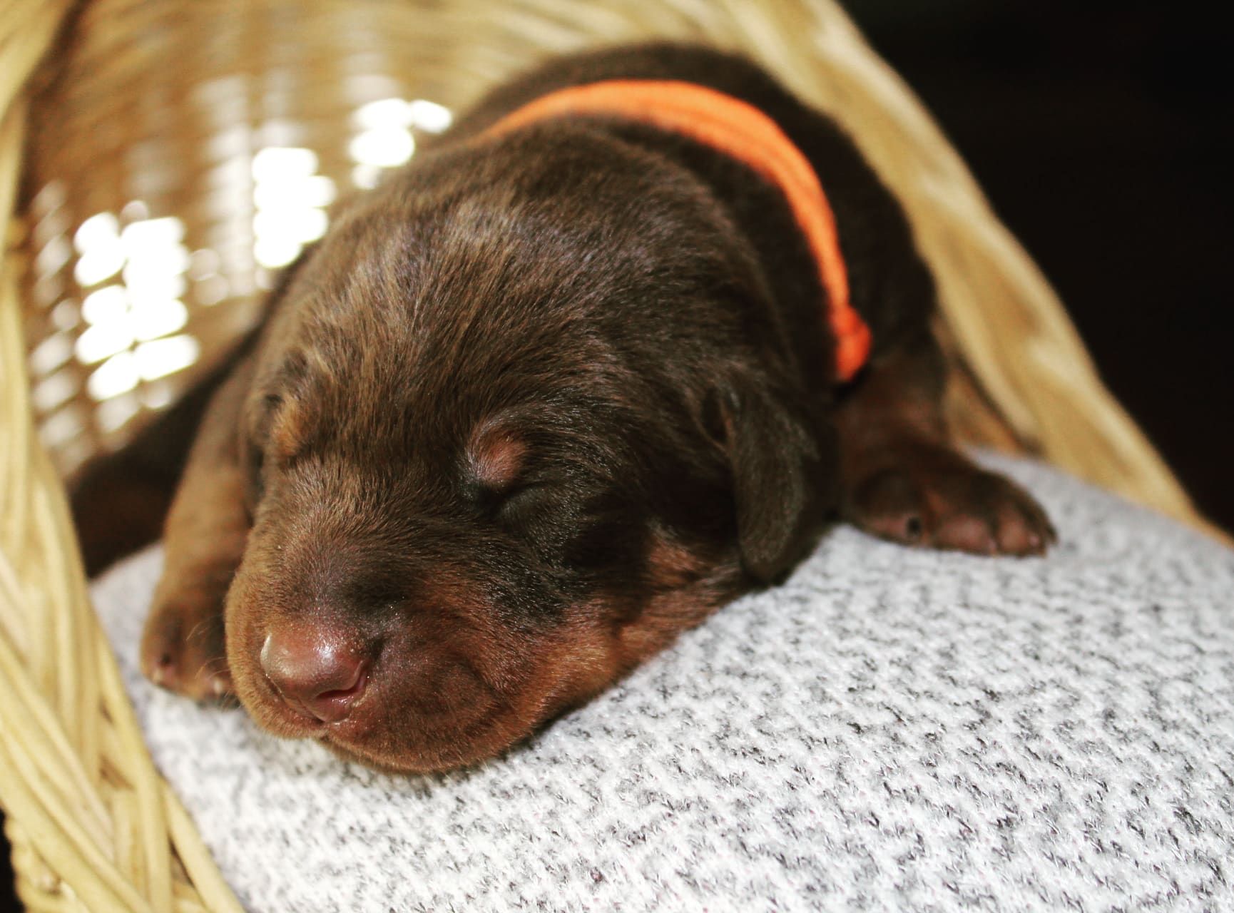 Our puppies are black and rust. Colors will vary depending on the parent dogs.