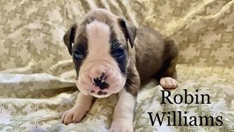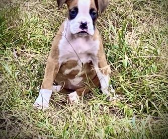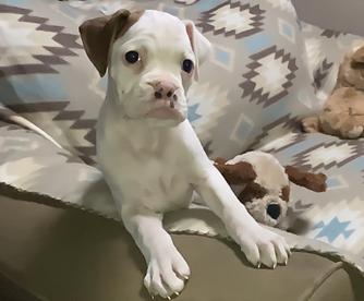 Our puppies include fawn, brindle, and white. Colors will vary depending on the parent dogs.