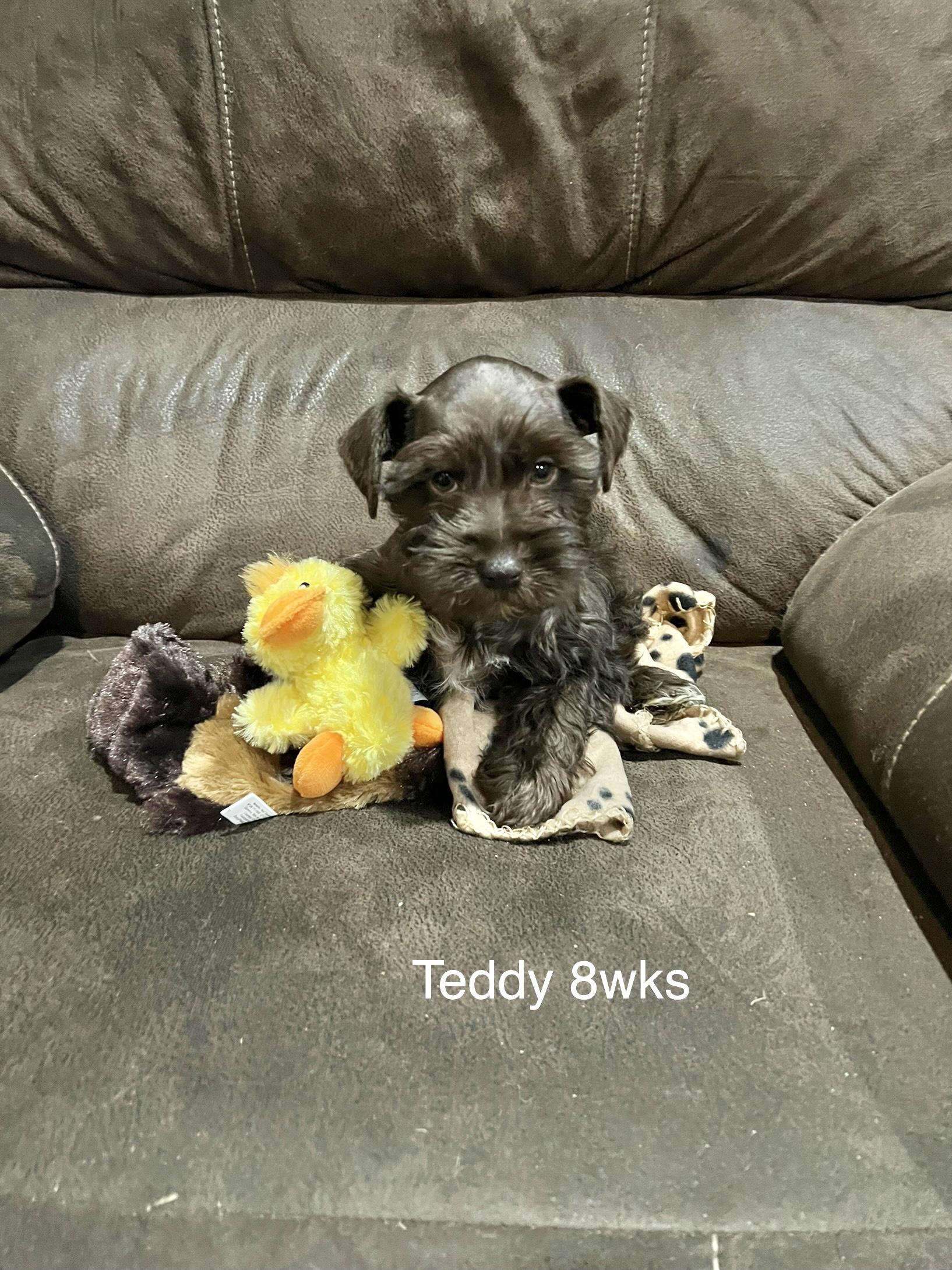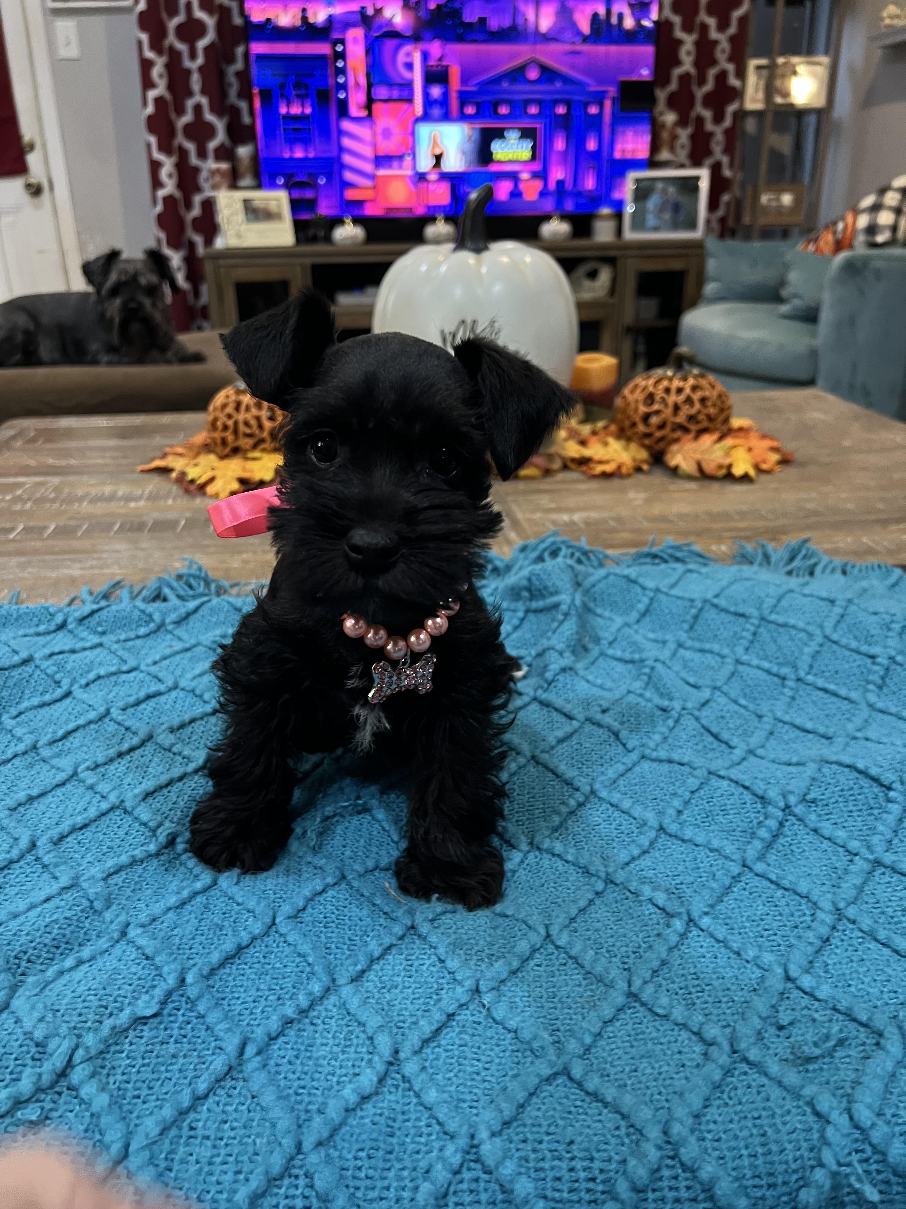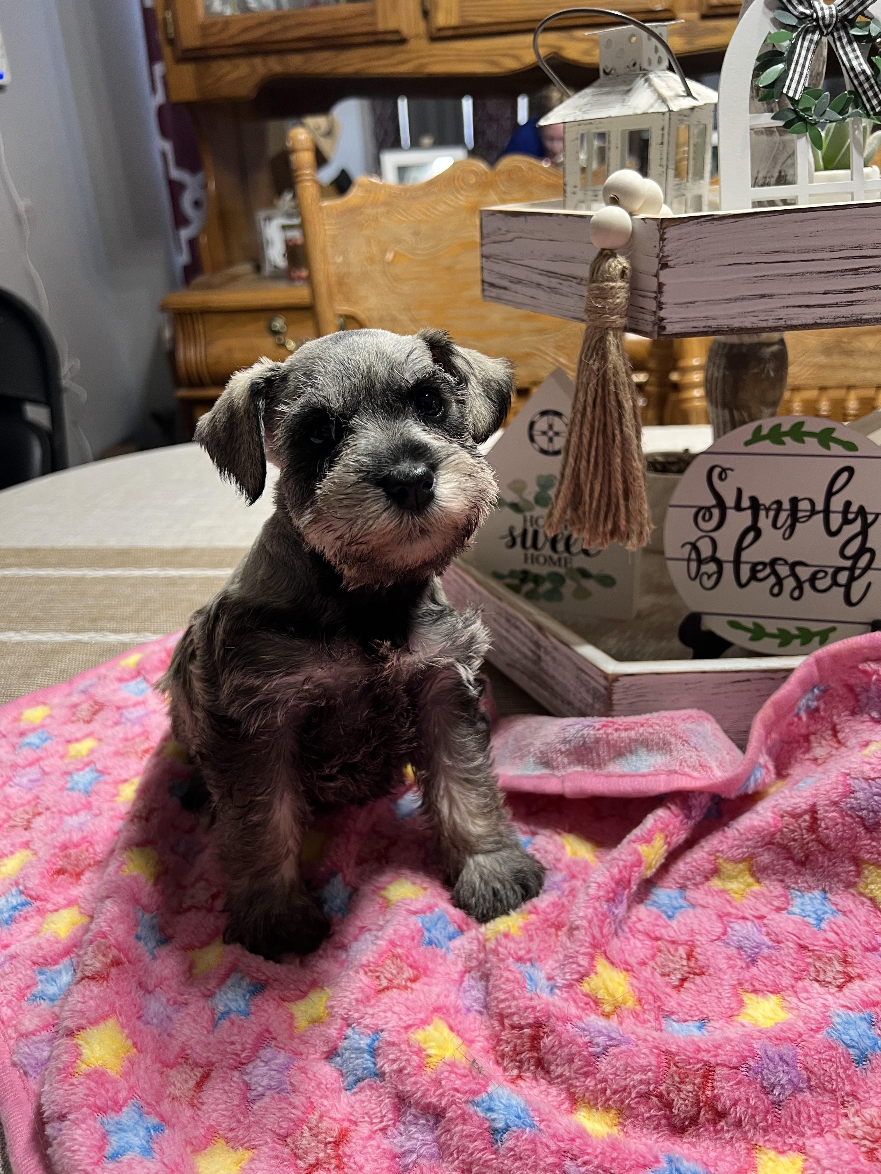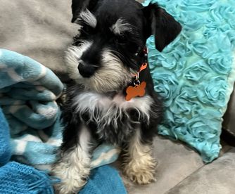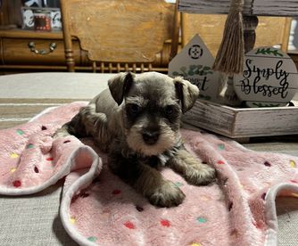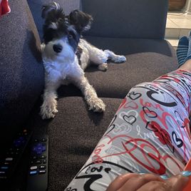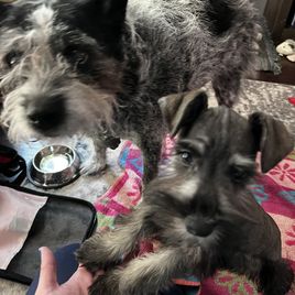 I found my sweet girl and new family member Calie, now Cutie Pie from Stephanie at Fran’s Schnauzers. After I found Stephanie on good dog she reached out to me and did a face-time to let me see the puppies and the different personalities. I fell in love with Calie. Stephanie kept me up to date with her growth with pictures and text. She made the process super easy and still helps me after I brought her home with any questions or concerns. She asked if I wanted to rename and started calling her my name to get her ready for her forever home. Stephanie’s love for her furry babies makes her the #1 best person you could have on your side. I would totally recommend Stephanie if you are looking for a mini schnauzer or just a really good dog that will totally love you with all its heart.