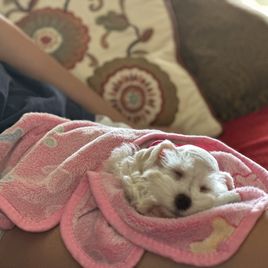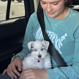 Am very pleased with the process of obtaining my new fur baby. Stephanie made it so easy and answered my questions quickly. Mia is so much fun and she is so loving. She got to go to work with me during few 2 weeks, my boss says she can come anytime lol. I would recommend Stephanie to anyone who is looking for a fur baby. One of the things I loved was we did "FaceTime" so we got to see her play. That was great. Also Stephanie made the delivery a breeze she met me closer to my home. I was in love the second she handed me Mia thank you Stephanie for everything.