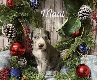 Our puppies include mantle merle, mantle, and merle. Colors will vary depending on the parent dogs.