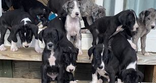 Our Danes and puppies are raised in our home alongside our pack. We use early neurological stimulation (ENS) and puppy culture program, which allows for early socialization and basic training. We also offer lifetime breeder support and require spay/neuter contract and a return contract. All puppies leave with a 2 year genetic health guarantee as well