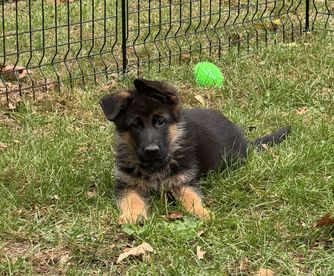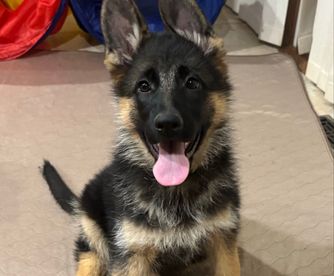 I recommend Angela as the best and most responsive breeder I have worked with. She’s responsible, and her litter is beautiful and intelligent. Ms. Red is already fetching balls and working pretty well with the retractable leash, and she’s training me more than I am teaching her. To anyone interested in adopting a beautiful, healthy, and smart purebred GS, Angela is the breeder to go to!