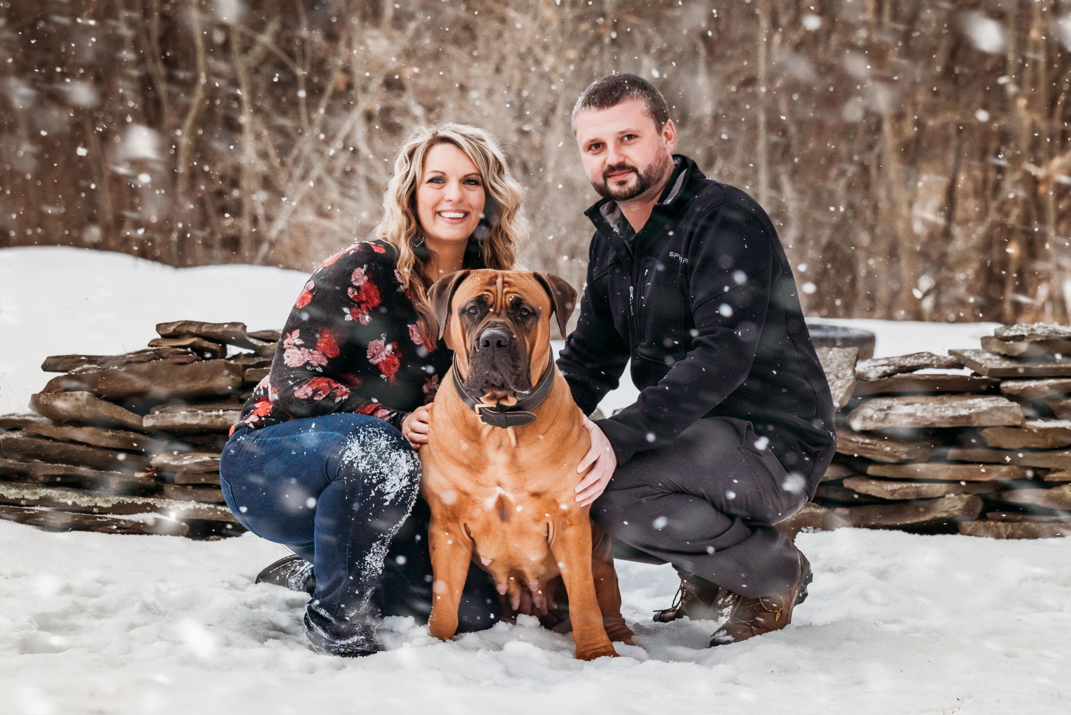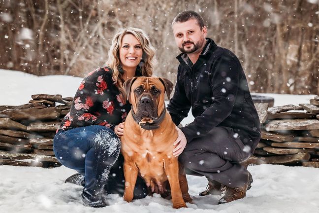 I'm Shane & Liz M., the breeder behind Freedom Boerboels LLC located in Naples, NY. Our focus is on maintaining the integrity of the old world Boerboel while producing a well-rounded, healthy working dog. Each dog in our program is handpicked and goes through extensive training, socialization, and health testing. All our dogs are raised in our home providing a stable and confident Boerboel. Puppies will come registered with SABBS and both parents have been health tested, have had Penn Hip, and OFA elbows done. We look forward to connecting with you!