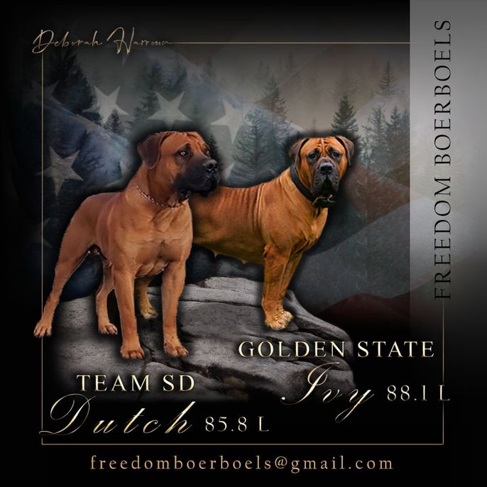 It is important to me that I not only preserve my own phenomenal bloodlines, but that I am improving this breed with each litter and ensuring the well-being of these dogs for generations more to come! My goal is to produce a well-rounded Boerboel that has the ability to excel in any venue with their new family.