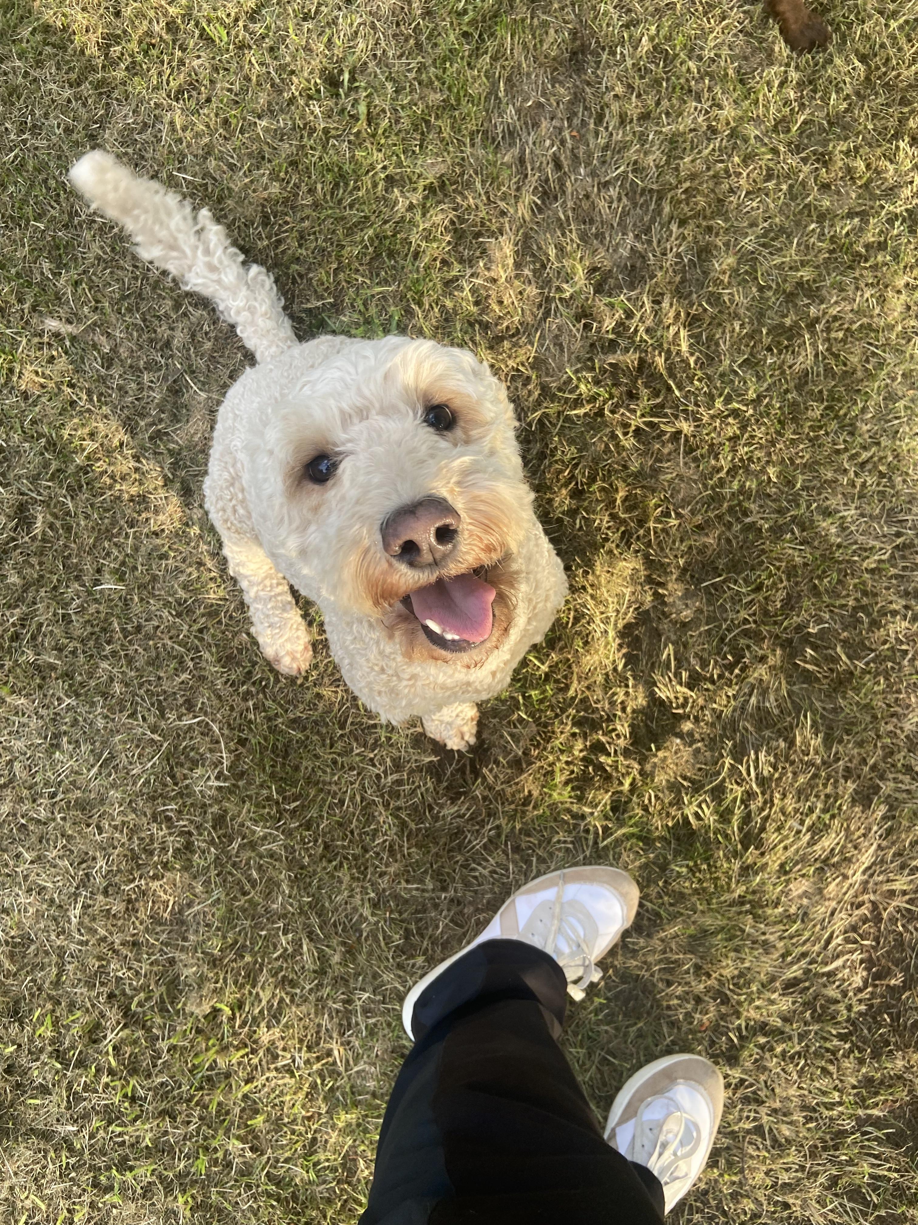 Bogart is a male Australian Labradoodle. Carefully selected as a great representative of his breed, Dallas decided to make him part of their program. Dallas has passed Good Dog’s screening process, which involved a review of their breeding practices, environment, and the mental and physical health of their dogs.