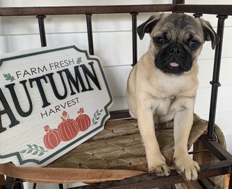 Sage (located near Baton Rouge) is a male Pug. Carefully selected as a great representative of his breed, Kat decided to make him part of their program. Kat has passed Good Dog’s screening process, which involved a review of their breeding practices, environment, and the mental and physical health of their dogs.