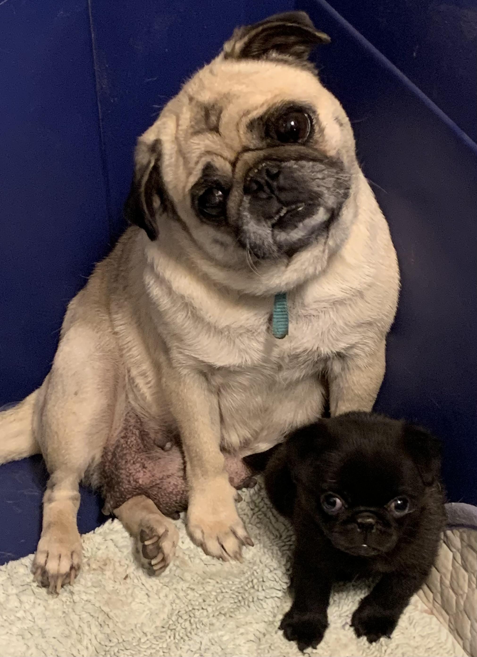 Mooloo is my best friend and the sweetest natured pug I’ve ever had! Her babies definitely take after not only her personality, but her looks!