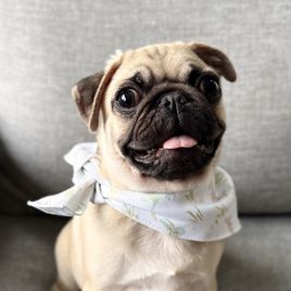 Little Bear is a male Pug. Carefully selected as a great representative of his breed, Kat decided to make him part of their program. Kat has passed Good Dog’s screening process, which involved a review of their breeding practices, environment, and the mental and physical health of their dogs.