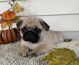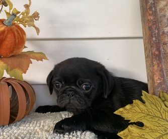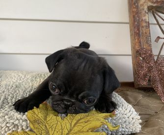 Our Pug puppies include black and fawn. Colors will vary depending on the parent dogs.