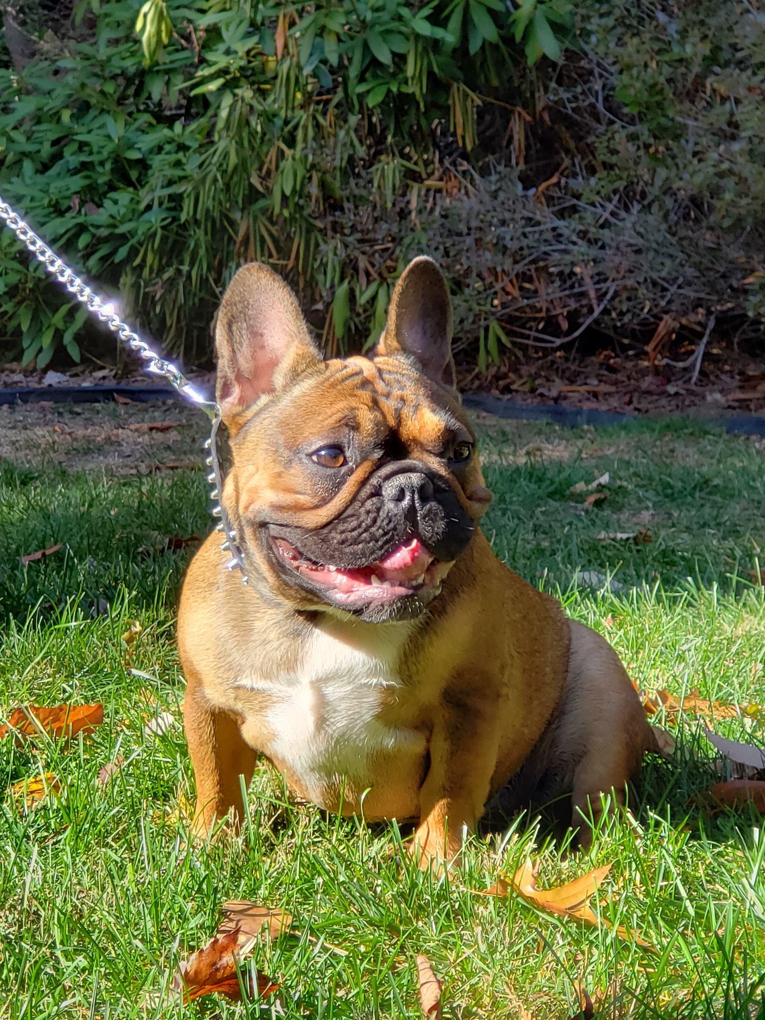 Ceasar is a male French Bulldog. Carefully selected as a great representative of his breed, James decided to make him part of their program. James has passed Good Dog’s screening process, which involved a review of their breeding practices, environment, and the mental and physical health of their dogs.