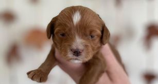 Our Poodle puppies include apricot, red, and parti. Goldendoodle puppies include apricot, red, and merle. Cavapoo puppies include red and apricot. Colors will vary depending on the parent dogs.