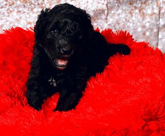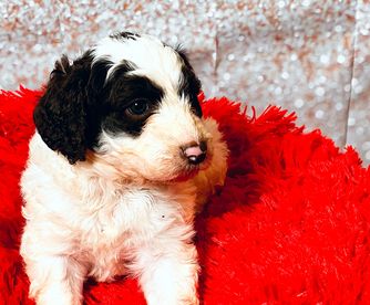 Our Poodle puppies include black, cafe au lait, silver-beige, and parti. Bernedoodle puppies include sable, black, black and white, tri-color, and phantom. Colors will vary depending on the parent dogs.