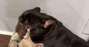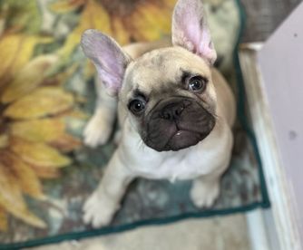 I'm Nici D., the breeder behind Frenchie Adventures located in Colonial Heights, VA. We have 4 French bulldogs-3 females and one male. Our male is chocolate trindle, the oldest female is cream, middle female is blue lilac (mom of current litter) and youngest female is blue sable carrying fluffy. We live in Virginia and our puppies come with shots, vet checks, and pre-spoiled!
