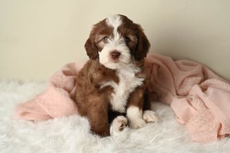 Puppy prices include a $200 non-refundable deposit and between $1,300 - $1,800 final payment, before taxes & fees.