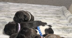 Our puppies include brindle, black, and black and white. Colors will vary depending on the parent dogs.
