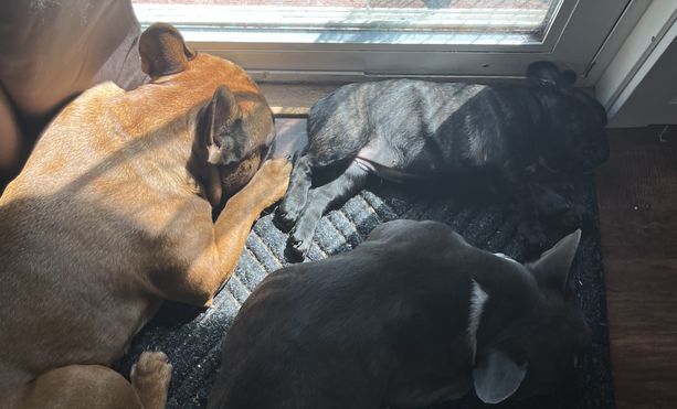 My mom used to breed Boston Terriers. I got my stud (Shadow) almost 4 years ago, and I got my female about two years ago. They naturally got pregnant. I just love these dogs so much . My two frenchies are family. They go pretty much everywhere with me. They sleep with my daughter on her king size bed. We didn't think they could get pregnant naturally, because that's what everyone was telling me. Low and behold husband and I are at work all the way in Seattle and my daughter calls and and said they did it! I really couldn't believe it. It was unexpected, but we are extremely happy to have these puppies.
