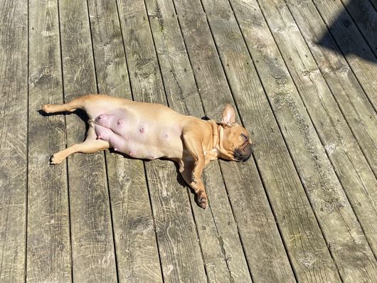 Belle is a female French Bulldog. Carefully selected as a great representative of her breed, Micki decided to make her part of their program. Micki has passed Good Dog’s screening process, which involved a review of their breeding practices, environment, and the mental and physical health of their dogs.