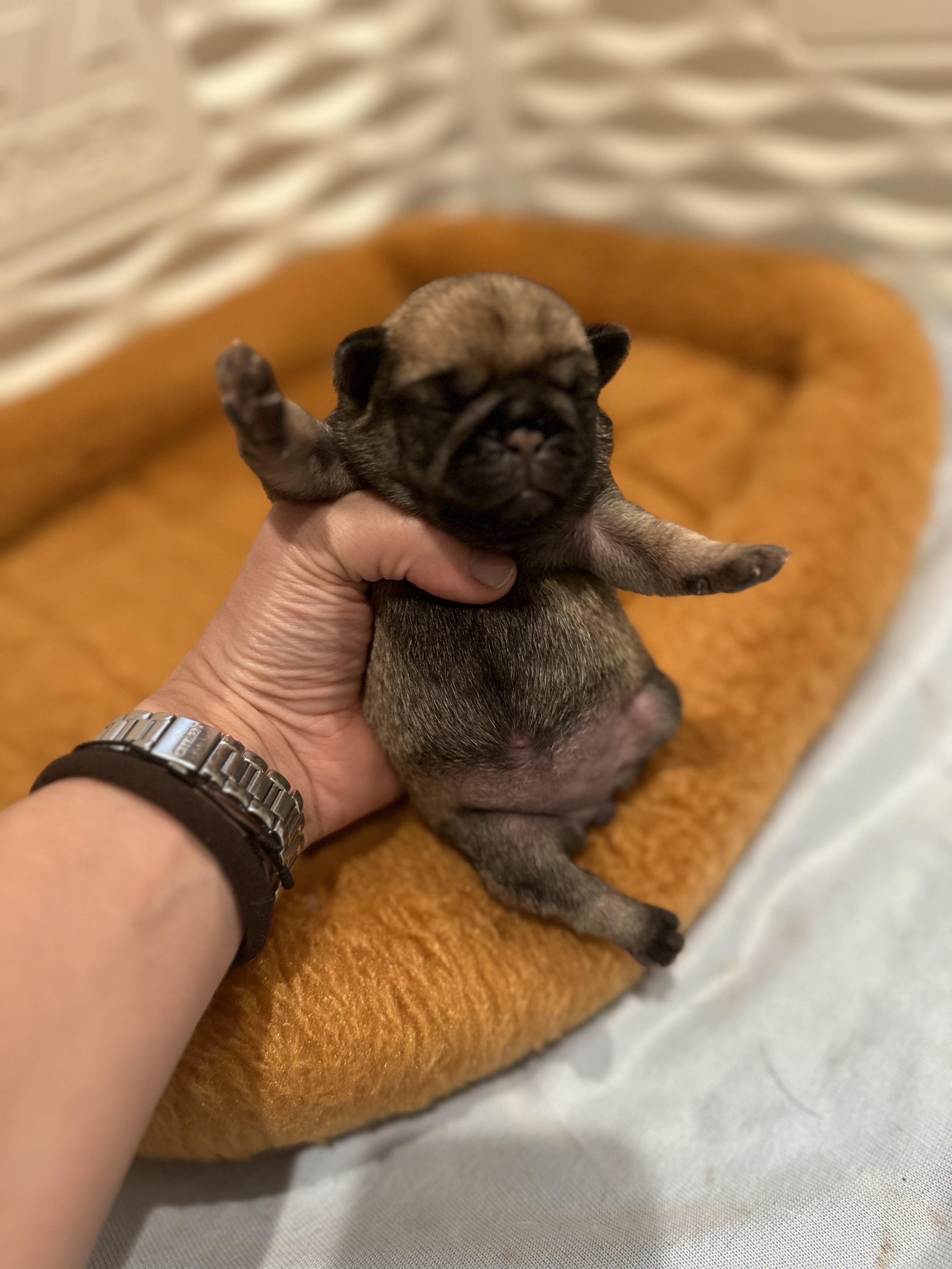 Touty Mai is a female French Bulldog. Carefully selected as a great representative of her breed, Brenda decided to make her part of their program. Brenda has passed Good Dog’s screening process, which involved a review of their breeding practices, environment, and the mental and physical health of their dogs.