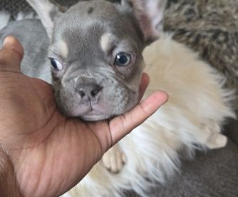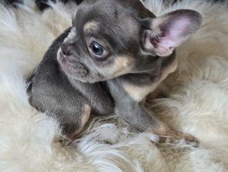 Cream Frenchie she carris blue , coco, blue tri and fawn