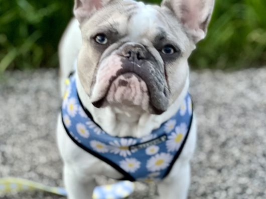 Gracie is a fun loving girl! She loves long walks and fetch in the back yard. Gracie is a very people pleasing pup! Gracie is a lilac pied. She’s always up for something fun.