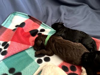 Our puppies include cream, chocolate, and black. Colors will vary depending on the parent dogs.