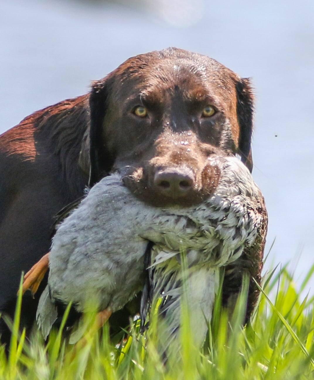 Three words to describe Harley: Looks, Talent, Temperament! He is an intelligent and biddable dog, always eager to work yet possessing a remarkable off switch. Harley is a dynamic presence in the uplands, showcasing both style and intensity in his point. He excels as a marker and is incredibly cooperative during blind retrieves. Achieving his APR at just 12 months, followed by GMPR and HR at 16 months, he is now a 4xGMPR at the age of 2 and has qualified for the APLA Triple Crown and earned the title of Hunting Retriever Champion. This chocolate stud comes from outstanding bloodlines and truly embodies the essence of a true gundog!