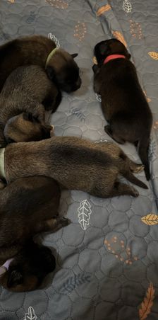 Gouda’s puppies are 2 weeks old tomorrow! Everyone is fat and happy, and most puppies have their eyes open. I still have 2 females and one flexible on gender spot for working, sport or competition homes. These are working line Malinois and are not appropriate service dogs or therapy dogs.