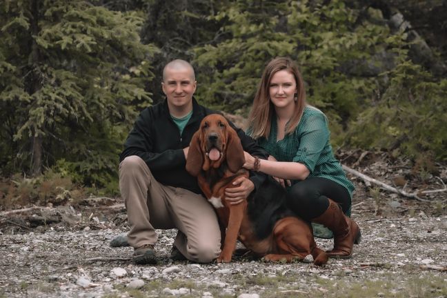 Once adding Dixie to our family we decided we would take on this venture. We’ve worked closely with another Bloodhound breeder, whom has 30 plus years experience, to learn from and help us grow this Bloodhound breed with quality in mind. This, paired with Camille’s Veterinary Assisting experience and education helped us with breeding and raising our hounds to a higher standard. In 2019 we got our first stud dog pup, Huckleberry.