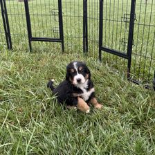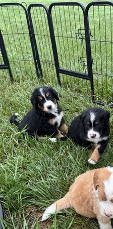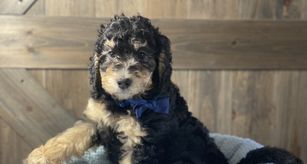 Juneau is a mini tri-color Bernedoodle that is calm and gentle. She loves to sit by your feet and bed and please you. Juneau is smart and learned very quickly. She loves children and pets.