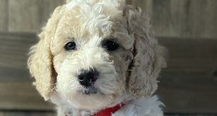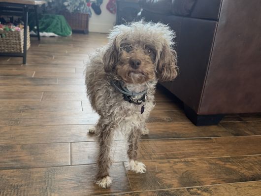 Hershey is a sweet and smart pet of ours. She loves to play with children and snug with our cat. She has a Bentley & Brewster curly coat color like her mom and is small like her father. She is a great mother to her puppies.