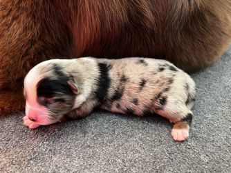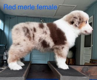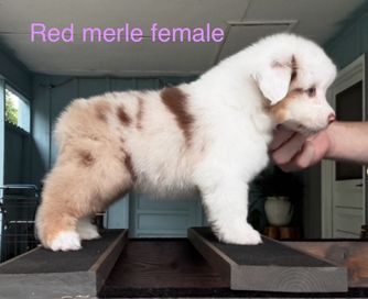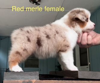 Our puppies include black, red merle, and blue merle. Colors will vary depending on the parent dogs.