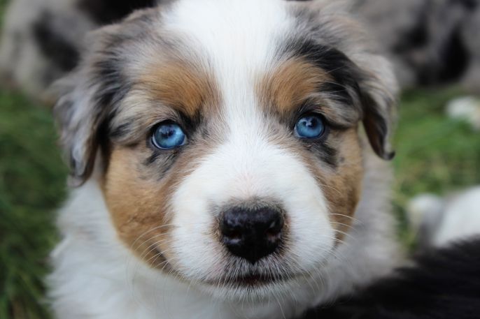 Our puppies include black, red merle, blue merle, and red. Colors will vary depending on the parent dogs.