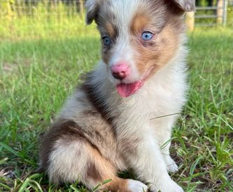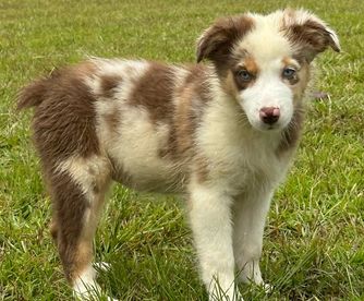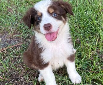 Our Goldendoodle puppies include red and parti. Australian Shepherd puppies include red merle, blue merle, black tri-color, and red tri-color. Colors will vary depending on the parent dogs.