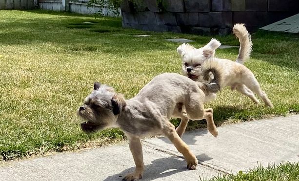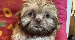 Eli is a beautiful liver colored Shih Tzu with a liver nose and green eyes. He is playfu, affectionate and very smart. He loves stuffies and always welcomes us with a stuffie in his mouth proudly wagging his tail. Eli is two and a half years old.